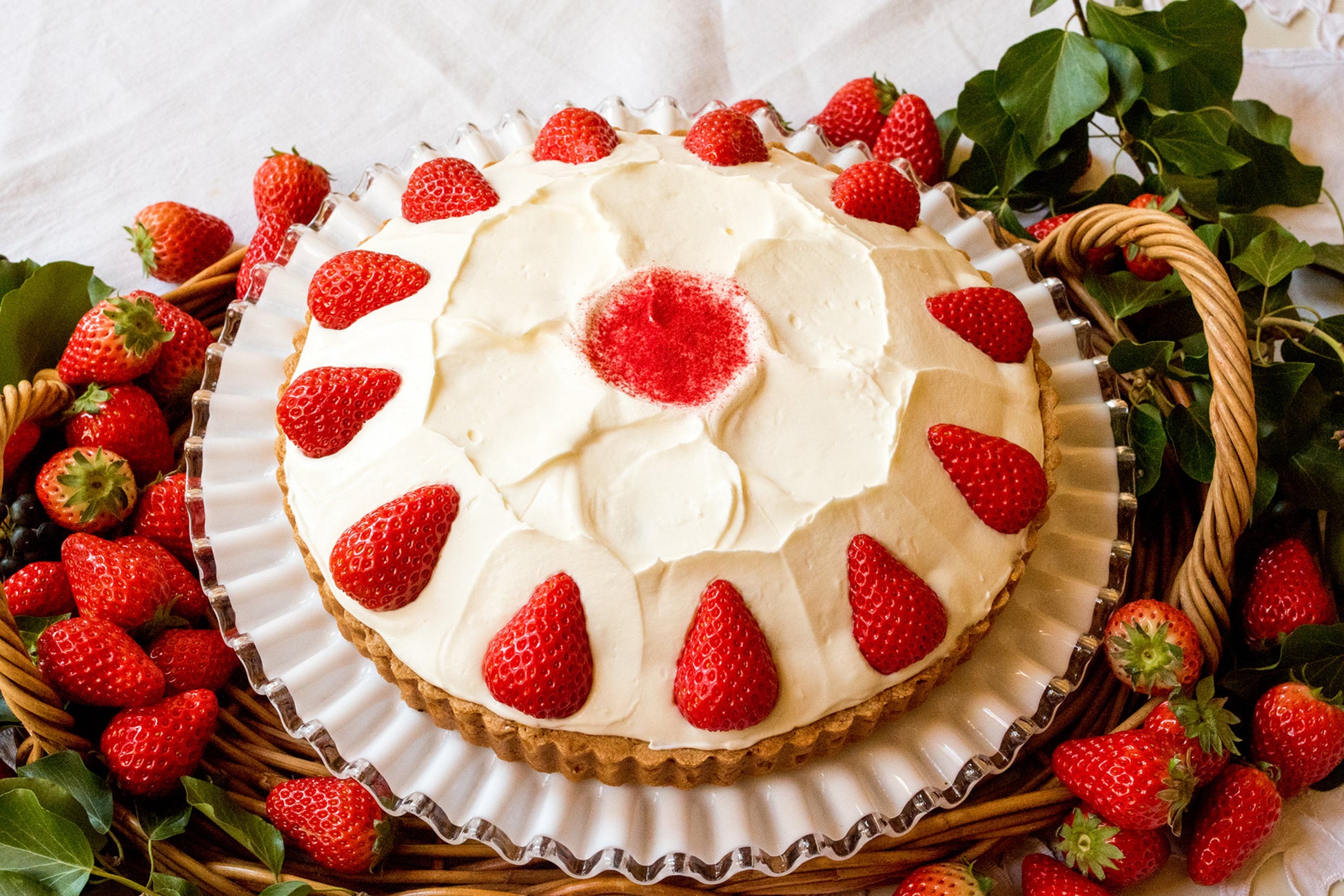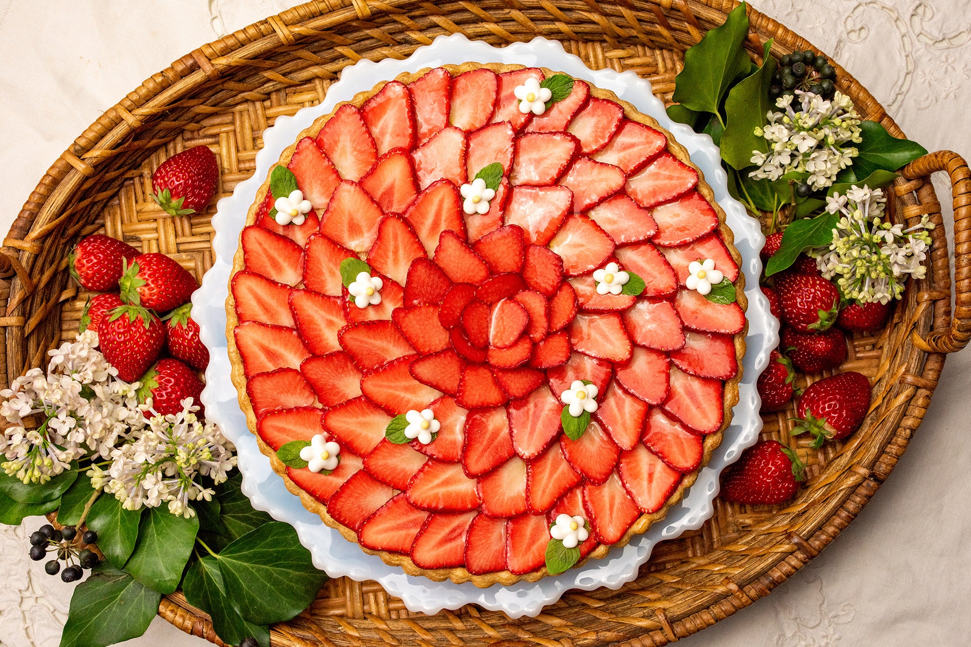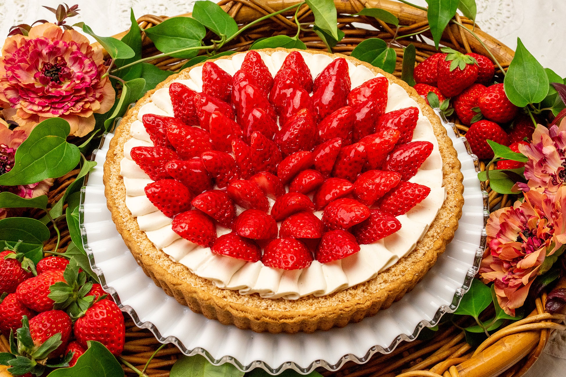 静岡生まれの“きらぴ香”を使用した、イチゴの華やかな香りいっぱいのタルトをつくりました。サワークリーム入りのカスタードに自家製ジャムを加え、大粒の“きらぴ香”で飾りました。たっぷりのイチゴとクリームの組み合わせは、何度でも食べたくなる味わいです。