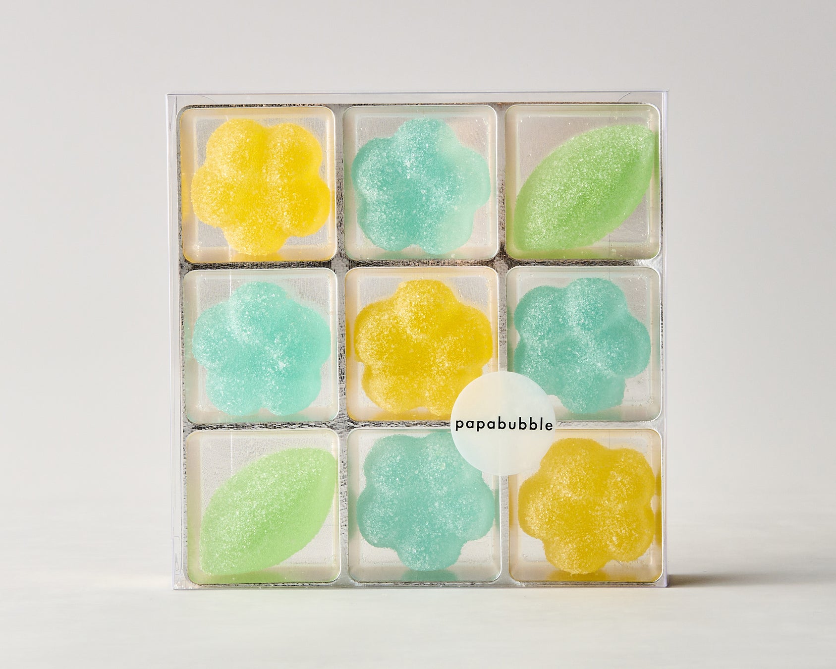 パパブブレのすべてを堪能できる、盛り沢山のギフトボックスです。近年のお返し需要に向けた、職場やパーティーで大勢に配ることも可能なギフトボックスは、見た目にも華やかで、しばらく飾っておきたくなるようなアイテムです。中身はホワイトデー限定商品のほか、人気の定番キャンディやバブレッツなど全9種類。限定商品も定番人気商品も、この1箱で楽しめます。個包装になっているので、1個ずつ9人に配ることも、みんなでシェアすることもでき、もちろん大切なお一人へ向けてのプレゼントにもおすすめです。