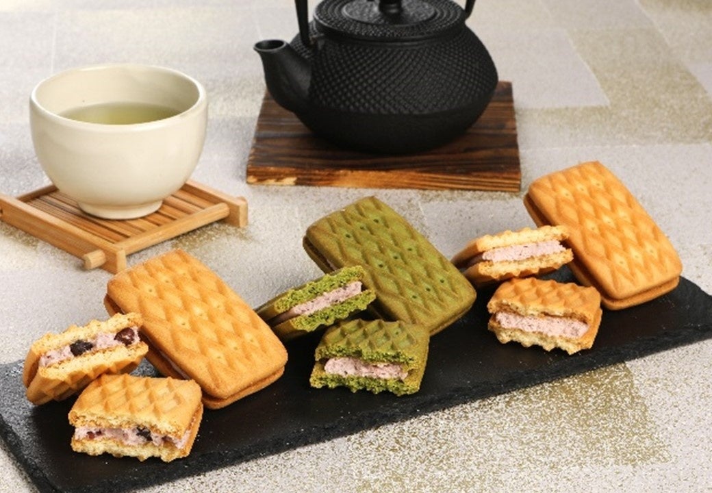 2015年発売の和洋折衷のクリームサンドビスケットで、しっとりとしたビスケットにあずきのクリームをサンドした贈り物にも手土産にもオススメの一品。