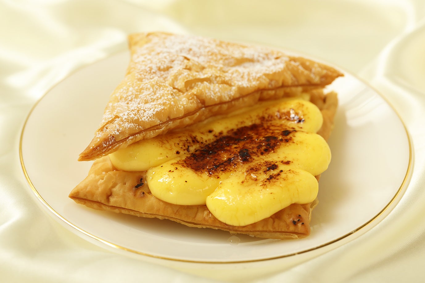 こだわり:・表面をブリュレした香ばしいカスタードクリームとカラメルソースをサクサクのパイ生地でサンドした、プリンとパイを融合させた新感覚スイーツです。
