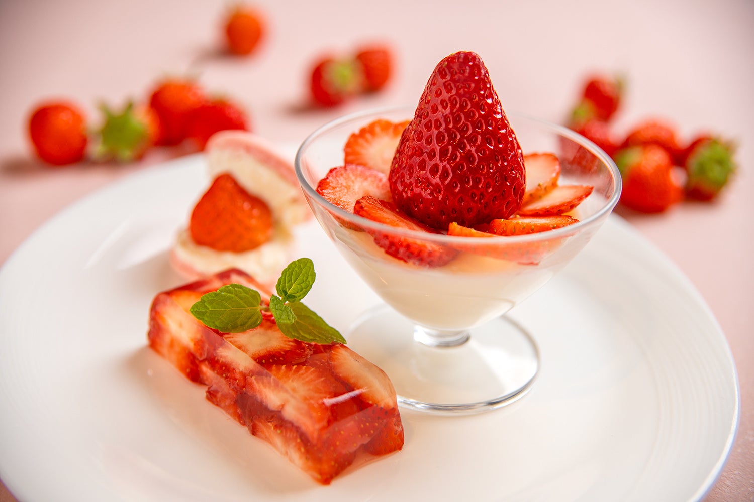 梅田スカイビル(大阪市北区)内のレストラン・スカイラウンジ・カフェでは、南河内産のプレミアムいちご「ちはや姫」をはじめ、甘さが弾ける真っ赤な朝採れいちごを使用したメニューを期間限定でご用意いたします。