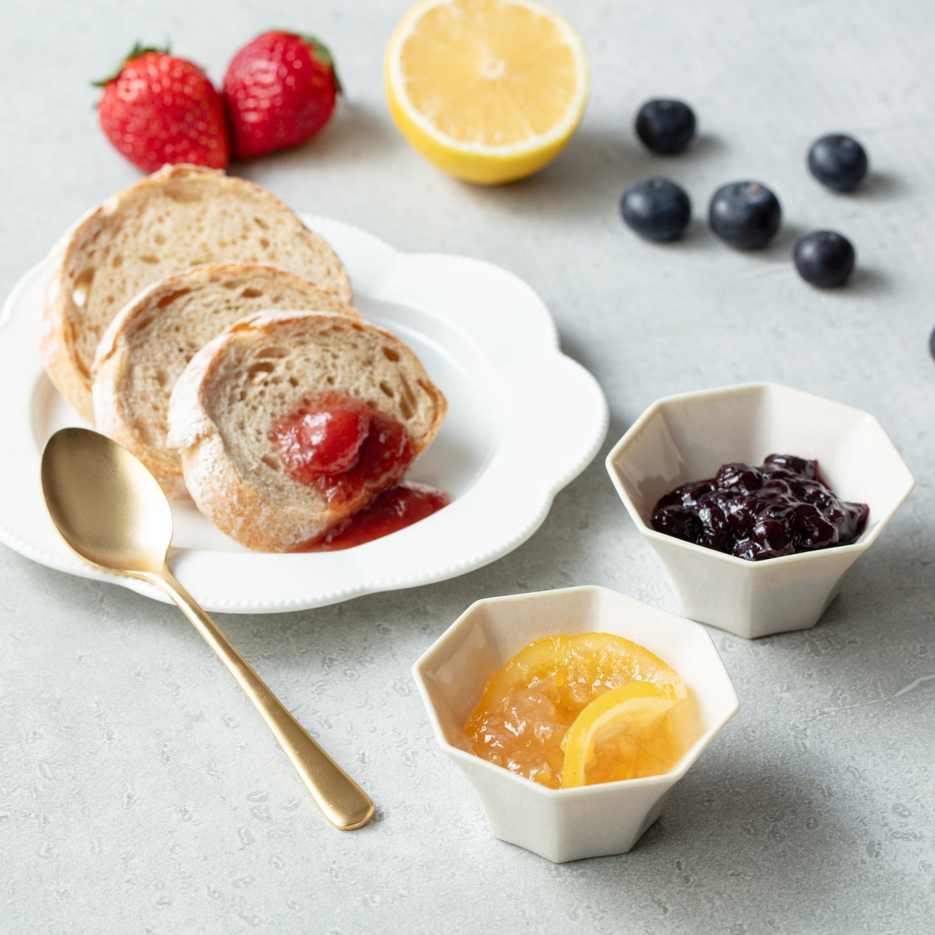 保存料などの合成添加物は一切使用せず手間暇かけて作られたジャムです。小粒で酸味と香りの強い国産の苺を使用し、甜菜糖のさわやかな甘みとの絶妙なハーモニーが楽しめる「ごろっといちご」、愛媛県岩城島のアレンユーレカという苦みの少ないレモンを、鮮やかな色を損なわないよう皮と身を別々に、北海道産甜菜糖でゆっくりと炊き上げた香り豊かな「レモンマーマレード&シャンパン」、国産のブルーベリーの風味を損なわないように独自の技法で炊き上げ、ポリフェノールたっぷりのほんのり甘酸っぱいジャムに仕上げた「まるごとブルーベリー」の3つのフレーバーを展開します。マスカルポーネやサワークリーム、ヨーグルトと合わせるとより一層おいしくお召し上がりいただけます。