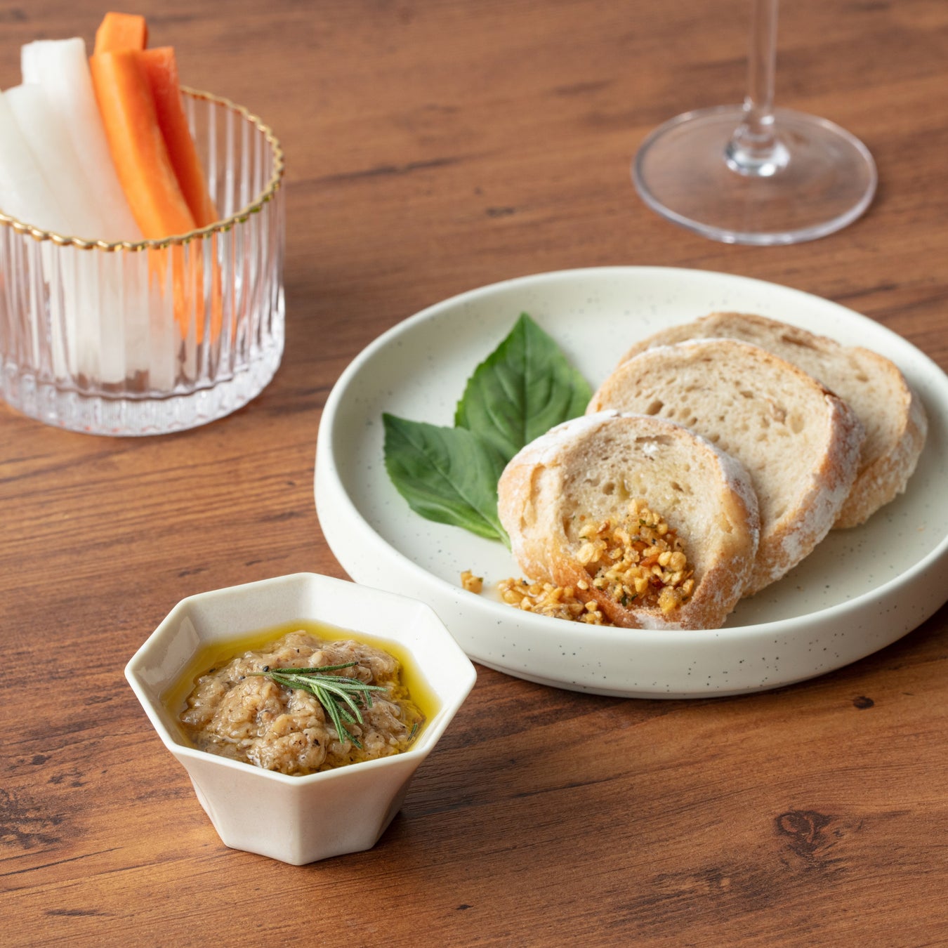 いつもの料理がワンランクアップする万能調味料です。「食べるオリーブオイル」はフライドガーリックとオニオンのザクザク食感が特徴です。バケットと一緒にお楽しみいただけるのはもちろん、パスタやピラフが簡単に美味しく仕上がります。「食べるバーニャカウダ」はしらすと米麹を使用し和風に仕上げました。スティック野菜にディップしたり、シチューのソースとしてもおすすめです。シンプルな白食器と一緒にコーディネートして簡単にちょっと贅沢なホームパーティーや、おうちディナーをお楽しみいただけます。