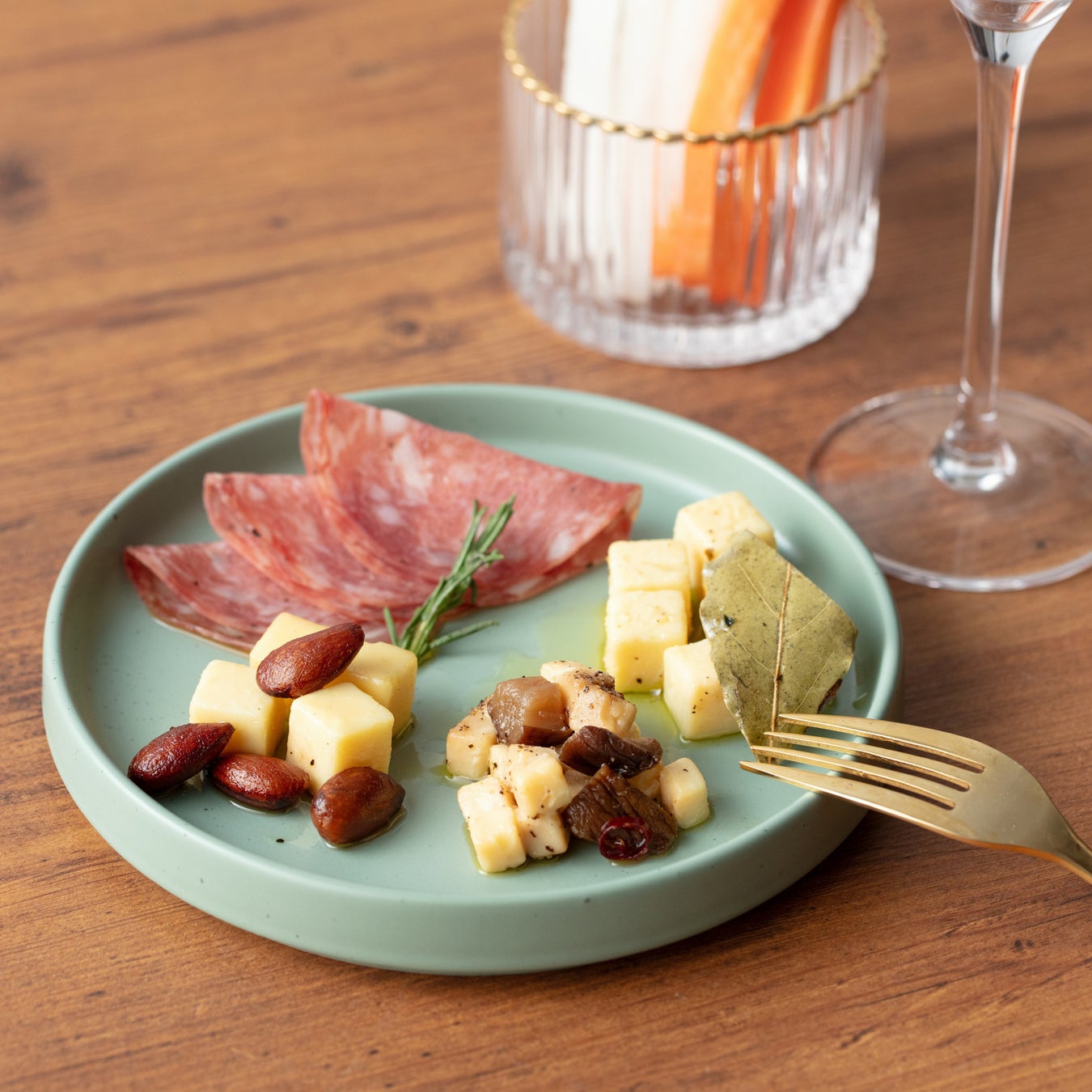 いぶりがっことチーズを秋田の魚醤しょっつるや塩麹を加えて仕上げた旨みたっぷりのオイル漬です。燻製の香りがオイルに溶け込み、最後の一滴までお楽しみいただけます。燻製の薫り豊かなチーズと、しょっつるを纏わせたアーモンドが美味しい「燻製ナッツ」はシンプルな中にコクを感じる芳醇な味わいでウイスキーのお供にもぴったりです。秋田県産塩麹とレモンが香る爽やかな味わいの「塩麹レモン」はほのかな酸味とバジルの風味でチーズをさっぱりと味わえるので白ワインと相性抜群です。お気に入りの器に盛り付けてちょっと頑張った日や週末の贅沢感ある一人飲み時間におすすめです。