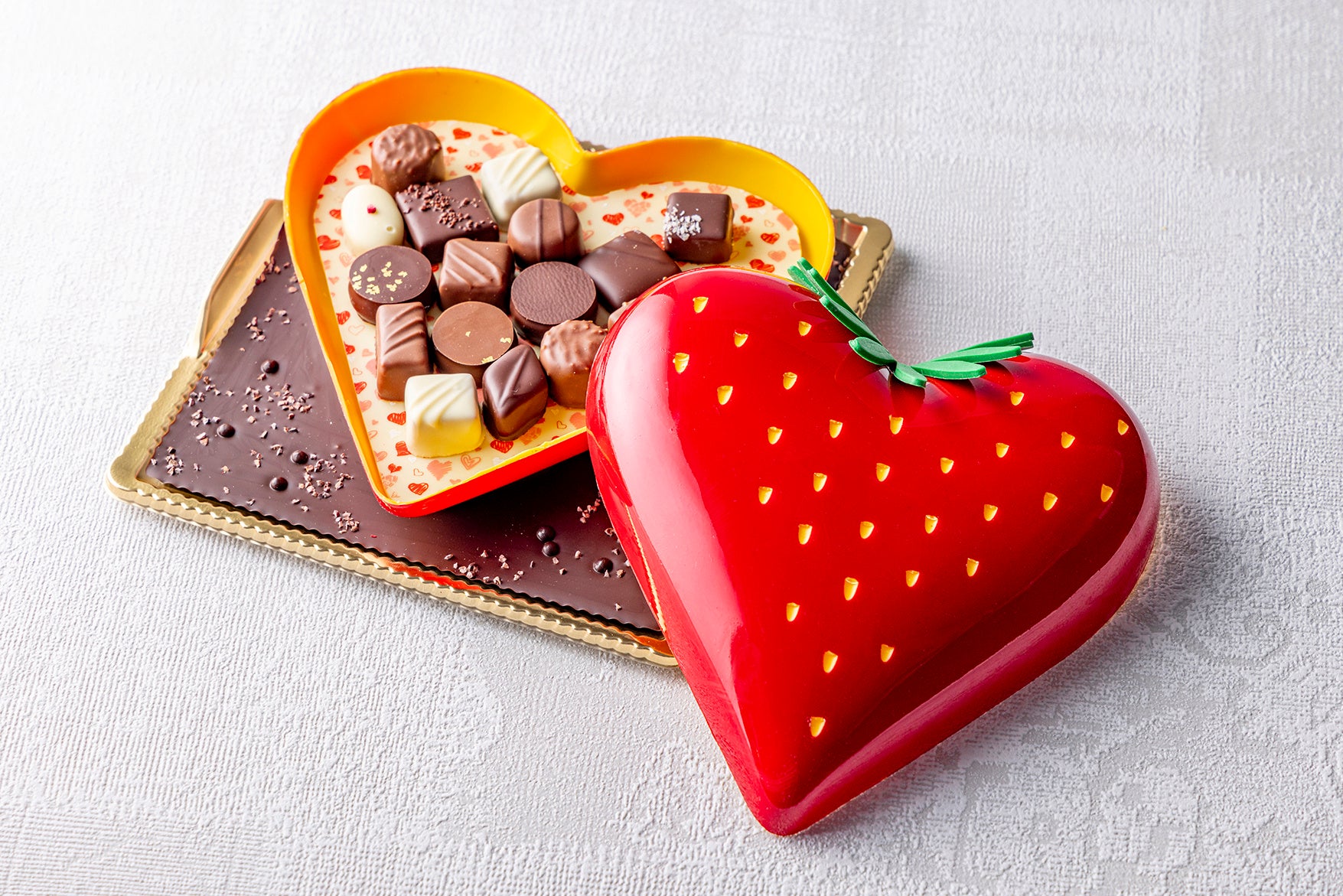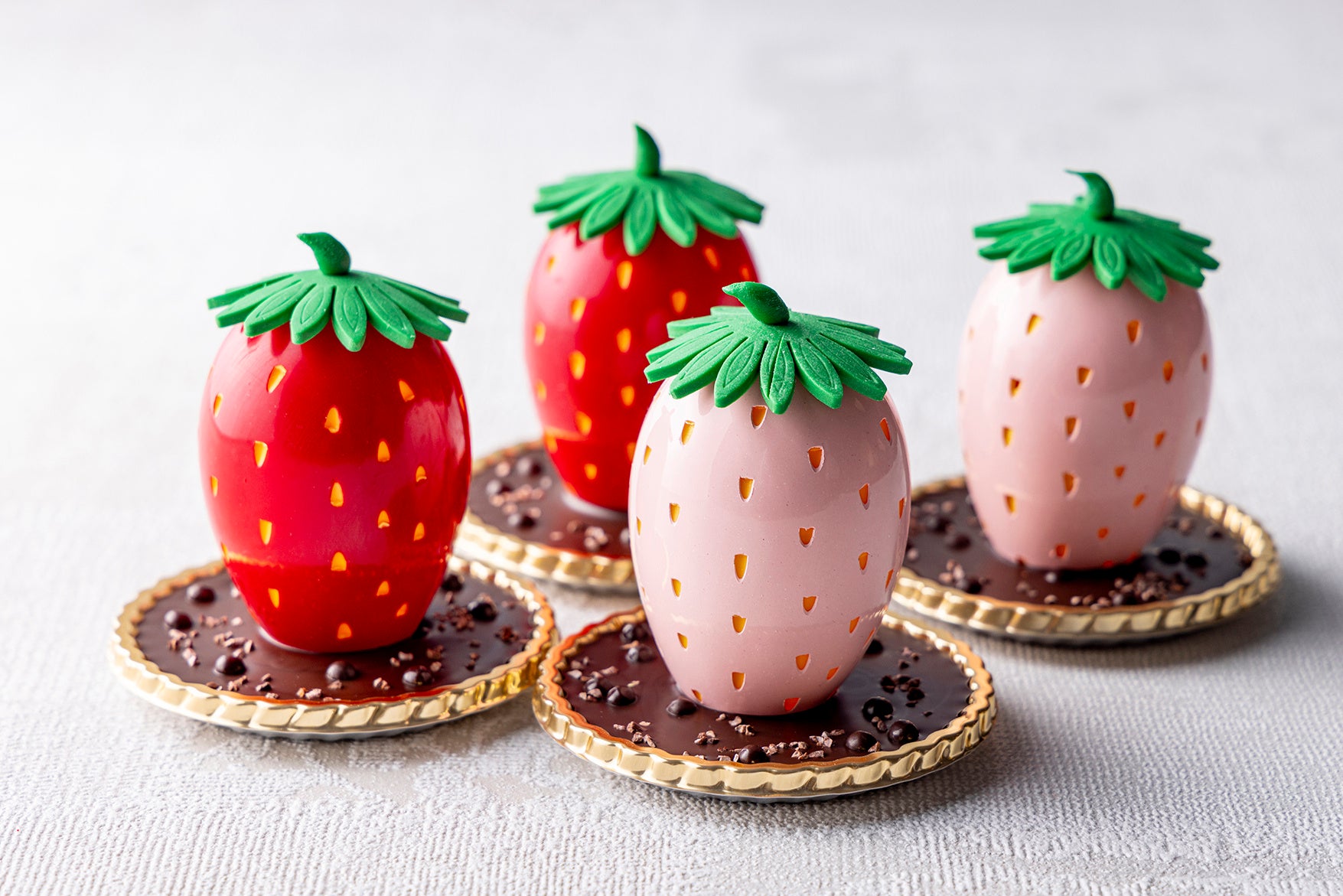 苺の形のチョコレートボックスの中にチョコレートボンボンを忍ばせた『ストロベリー』は、苺の粒や葉っぱまで、1つ1つ丁寧に手作りされ、贈られる方はもちろん、贈る側をも笑顔にする愛らしい1品です。赤、ピンクの2色で展開されるSサイズの『ストロベリー』(直径約10㎝/¥2,400)の中には4つのチョコレートボンボン、Lサイズの『ストロベリー』(直径約20㎝/¥6,800)には16個のチョコレートボンボンが配されます。フランボワーズのフォンダンをブラックチョコレートでコーティングした「フランボワジーヌ」やスパイスで風味付けした「パルファン・デピス」など、バラエティに富んだボンボンチョコレートをお楽しみいただけます。
