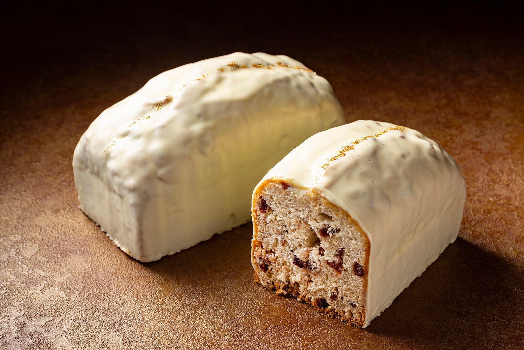 フランスの高級ショコラメゾン ヴァローナのブラックチョコレート‘カライブ’を用い、たっぷりのドライフルーツやナッツと共に焼き上げる『ショコラシュトーレン』(¥2,500)は、カカオ分66%ならではの香ばしい風味とコクを引き出した大人味に仕上がっています。