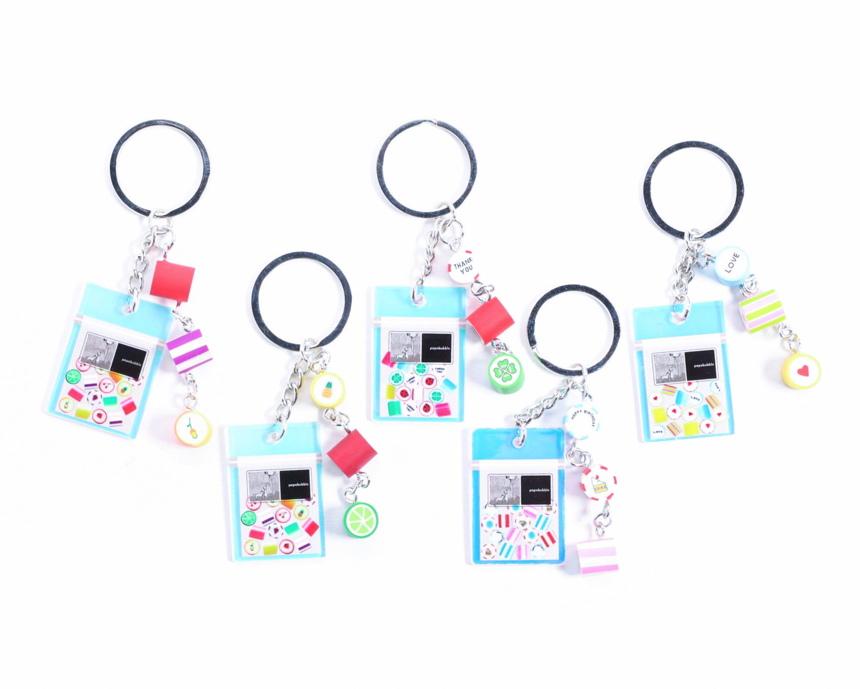 今回も、フルーツMIX(2種)、THANKYOU MIX、BIRTHDAY MIX、LOVE MIXという5種類をラインナップ。 人気の定番商品が小さくなったBAG型アクリルチャームに、本物とほぼ同じサイズのキャンディ型チャームが繋がった、ついついコレクションしたくなる可愛さが特徴です。いずれも数量限定での販売となります。