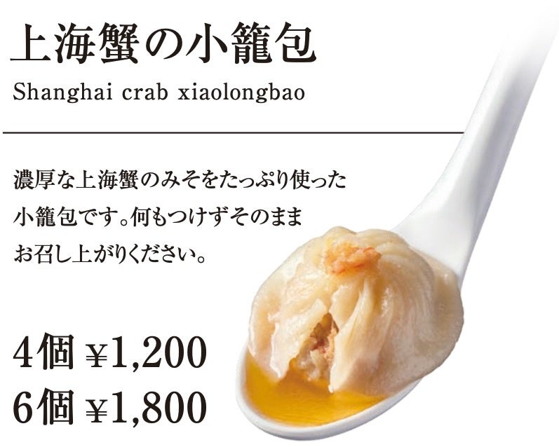 PARCO店限定メニューには「上海蟹の小籠包」「XO醬小籠包」と、新メニューには「鉄板台湾チャーハン」をご用意しております。