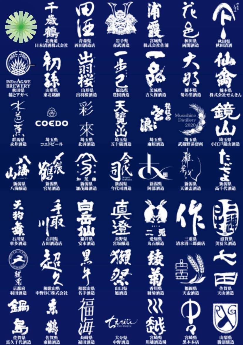 千歳鶴(北海道日本清酒)/田酒(青森県西田酒造店)/赤武(岩手県赤武酒造)/浦霞(宮城県株式会社佐浦)/花邑(秋田県両関酒造)/やまとしずく(秋田県秋田清酒)/稲とアガペ(秋田県稲とアガペ)/初孫(山形県東北銘醸)/出羽桜(山形県出羽桜酒造)/一歩己(福島県豊国酒造)