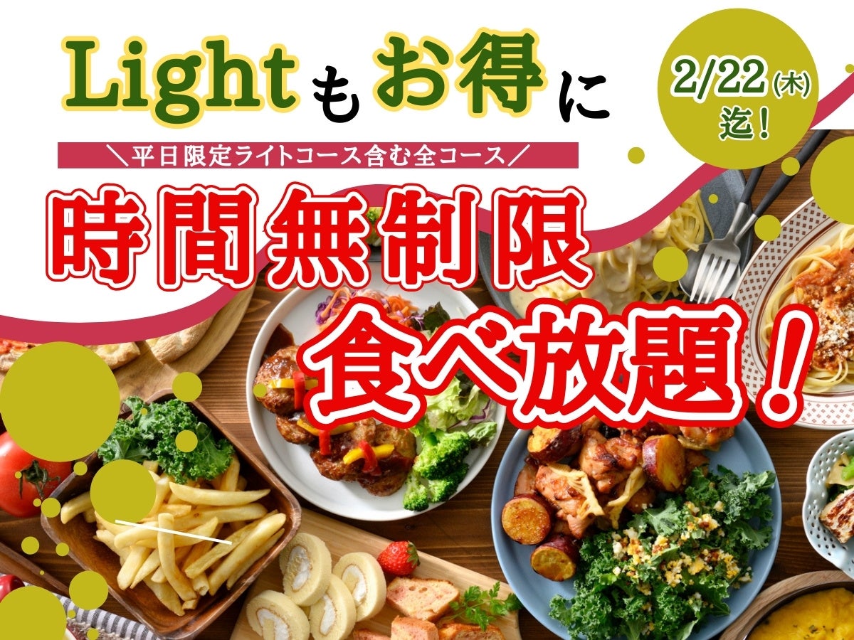 【平日は時間無制限でゆったり食べ放題‼】“ニラックスブッフェ”7店舗では、2/22迄の期間限定にて『ライトコース』から時間無制限でお楽しみいただけるキャンペーンを開催!たっぷり食べ放題を満喫しよう!