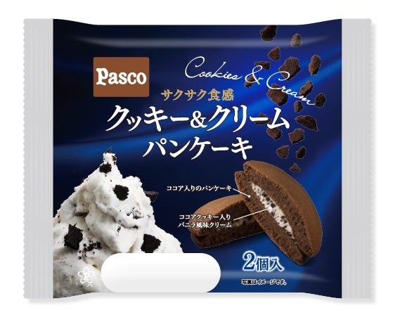 ふんわりとしたココア入りのパンケーキに、ココアクッキー入りバニラ風味クリームをはさみました。
