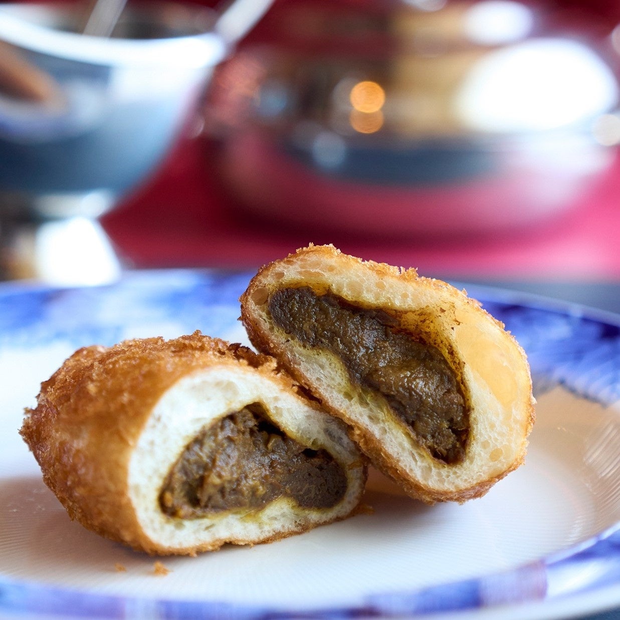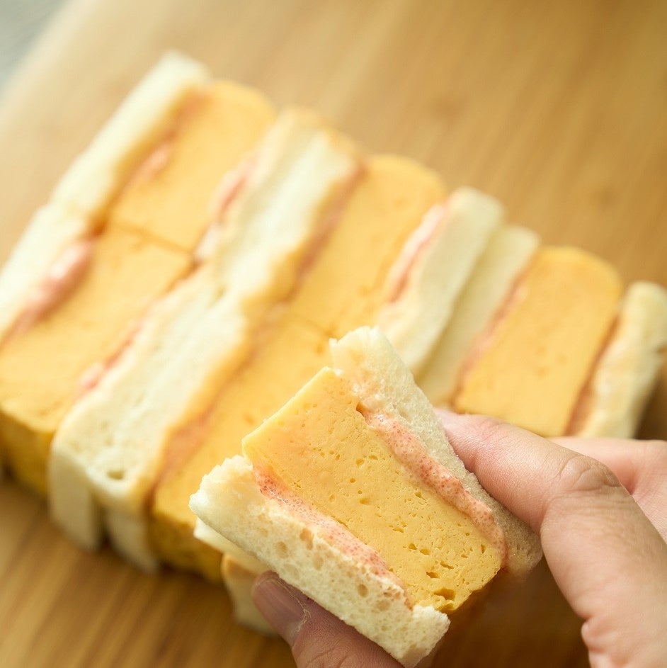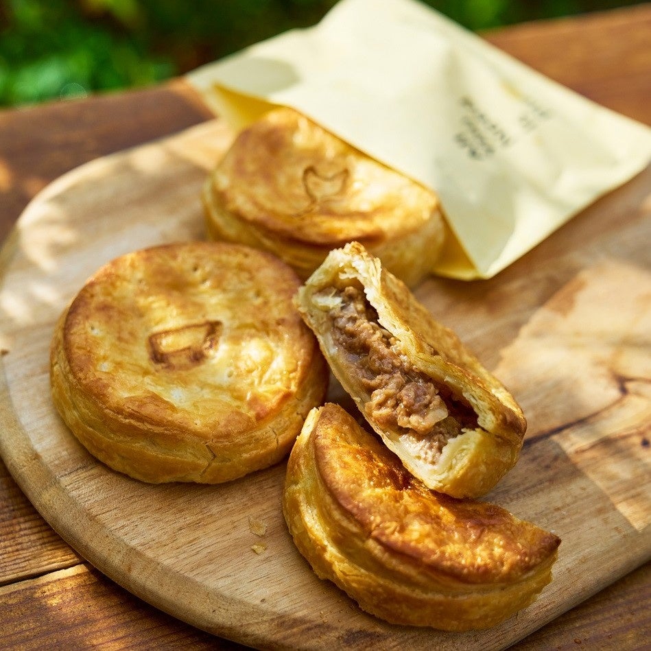 特製明太ソースとあごだしが効いた、だし巻きたまごのサンドウィッチ。佐賀にあるカレーの名店「レストラン白山文雅」で人気の欧風カレーを使用したカレーパン、熊本県産あか牛を贅沢に使ったサクサクのミートパイが初お目見え。