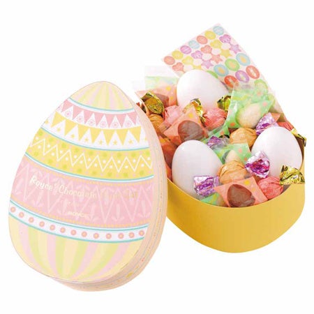 にぎやかなデザインの卵型ボックスに、イースター限定のひと口ショコラをたっぷりと詰め合わせました。卵型ケースやデコレーションシールも一緒になった、「エッグハント」をお楽しみいただけるセットです。