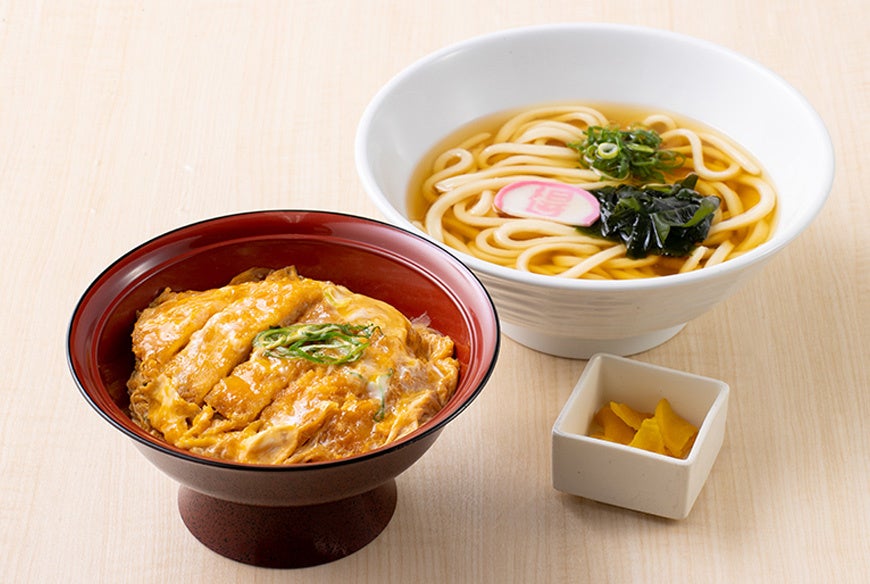 サクサクのかつに自慢のだしが染み込んだかつ丼は選べるうどん(温うどん・冷うどん・ミニきつねうどん)のセットがうれしい。