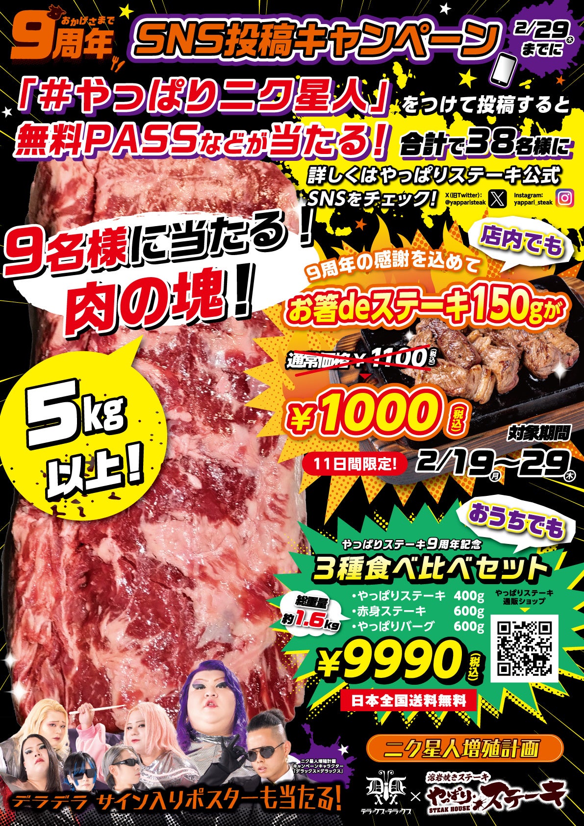 やっぱりステーキ9周年の今月は、そんなニク星人のためのキャンペーンを開催します!