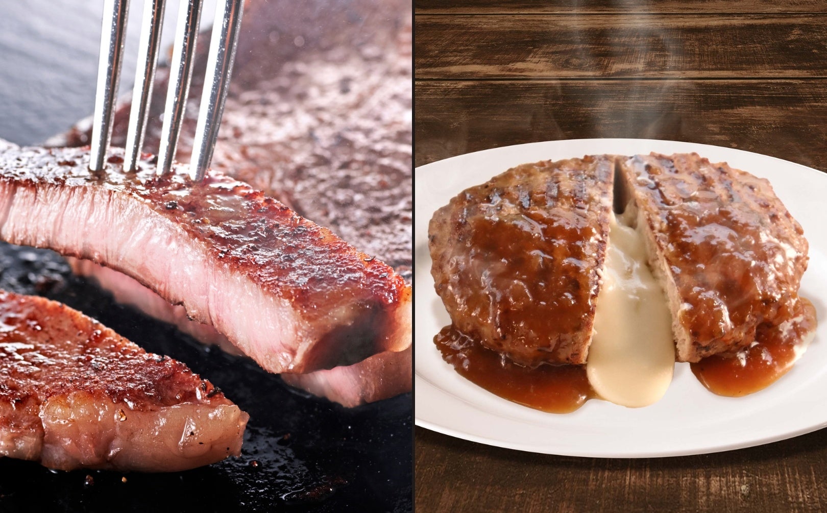 今回、お得にお楽しみいただけるプレミアムコースでは、『ビーフステーキ』や、肉汁と10種類のブレンドした濃厚なチーズが溢れ出す『チーズインハンバーグ』、レモンのさわやかな酸味と黒胡椒のパンチの効いた香りが食欲をそそる『檸檬(レモン)ペッパーチキンステーキ』など、充実のラインナップ!