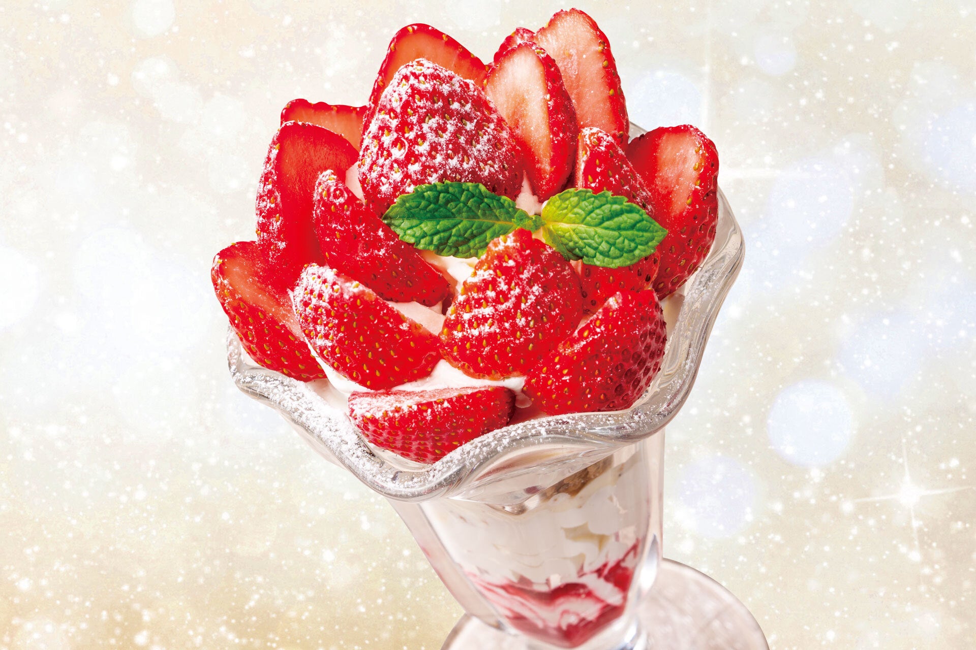 いちごといえばパフェ!という方に是非お召し上がりいただきたい、華やかでボリューム満点のデザートです。