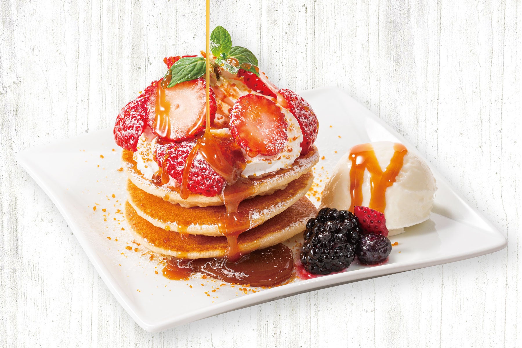 キャラメルいちごパンケーキ 590円(税込649円)