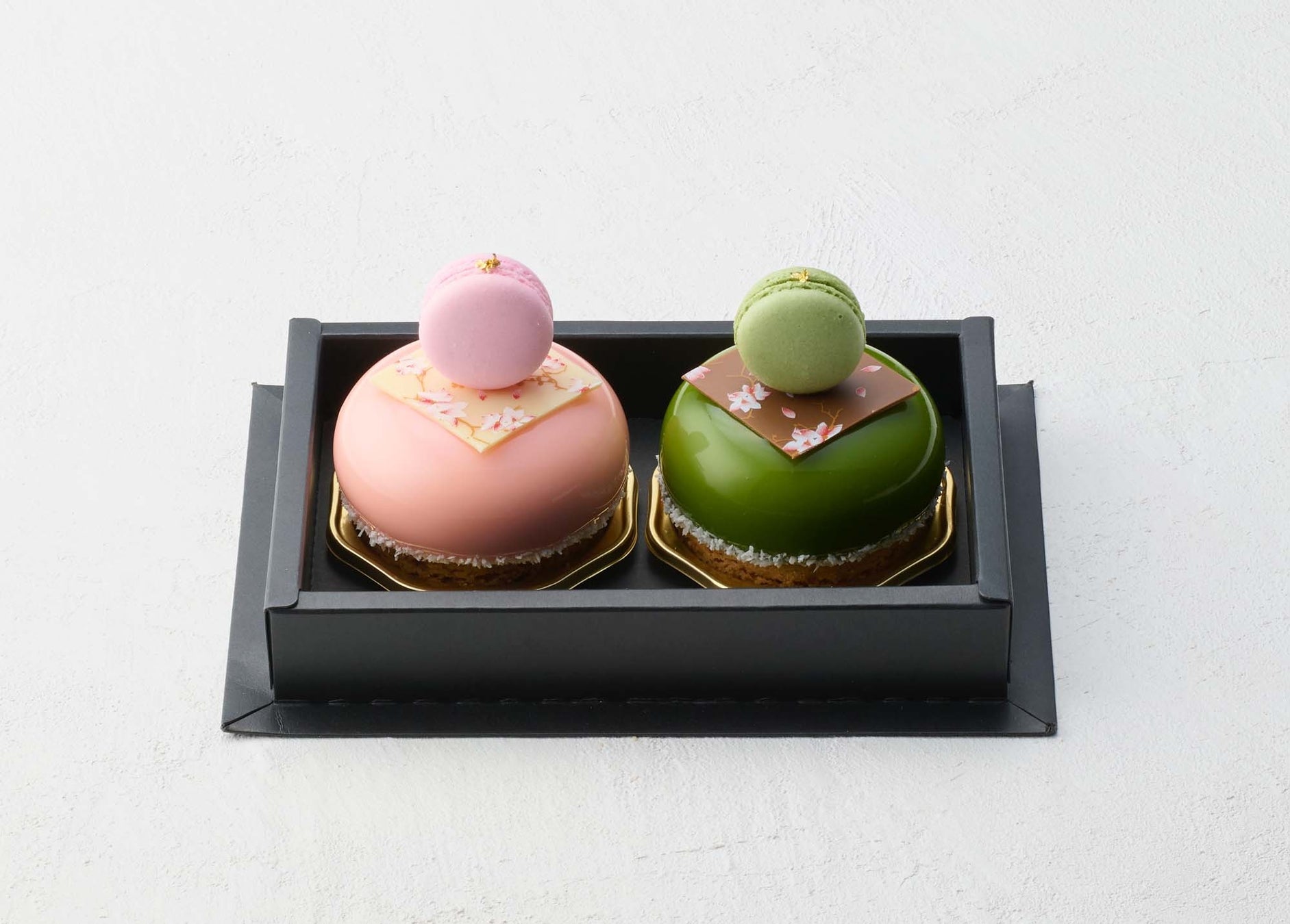桃の節句のひな人形をイメージしたケーキを詰め合わせた華やかなケーキギフトボックス。