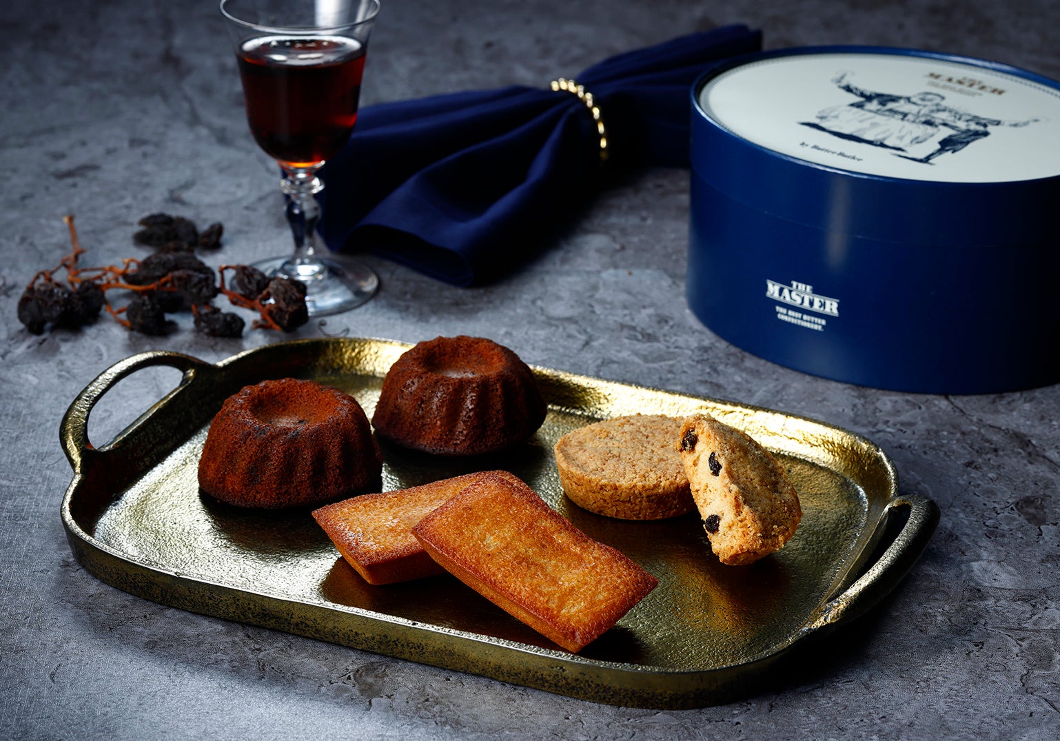 『ザ・マスター シーズナルエディションblue』は、3種のお菓子を詰め合わせた期間限定商品です。一番人気のバターのコクとナッツの香ばしさにこだわった「バターフィナンシェ」の他、メープルの甘味とラムレーズンの酸味が効いた「ラムレーズンバタークッキー」、バター香るしっとりした生地にラムレーズンを閉じ込めた「ラムレーズンバターケーキ」の詰め合わせでございます。