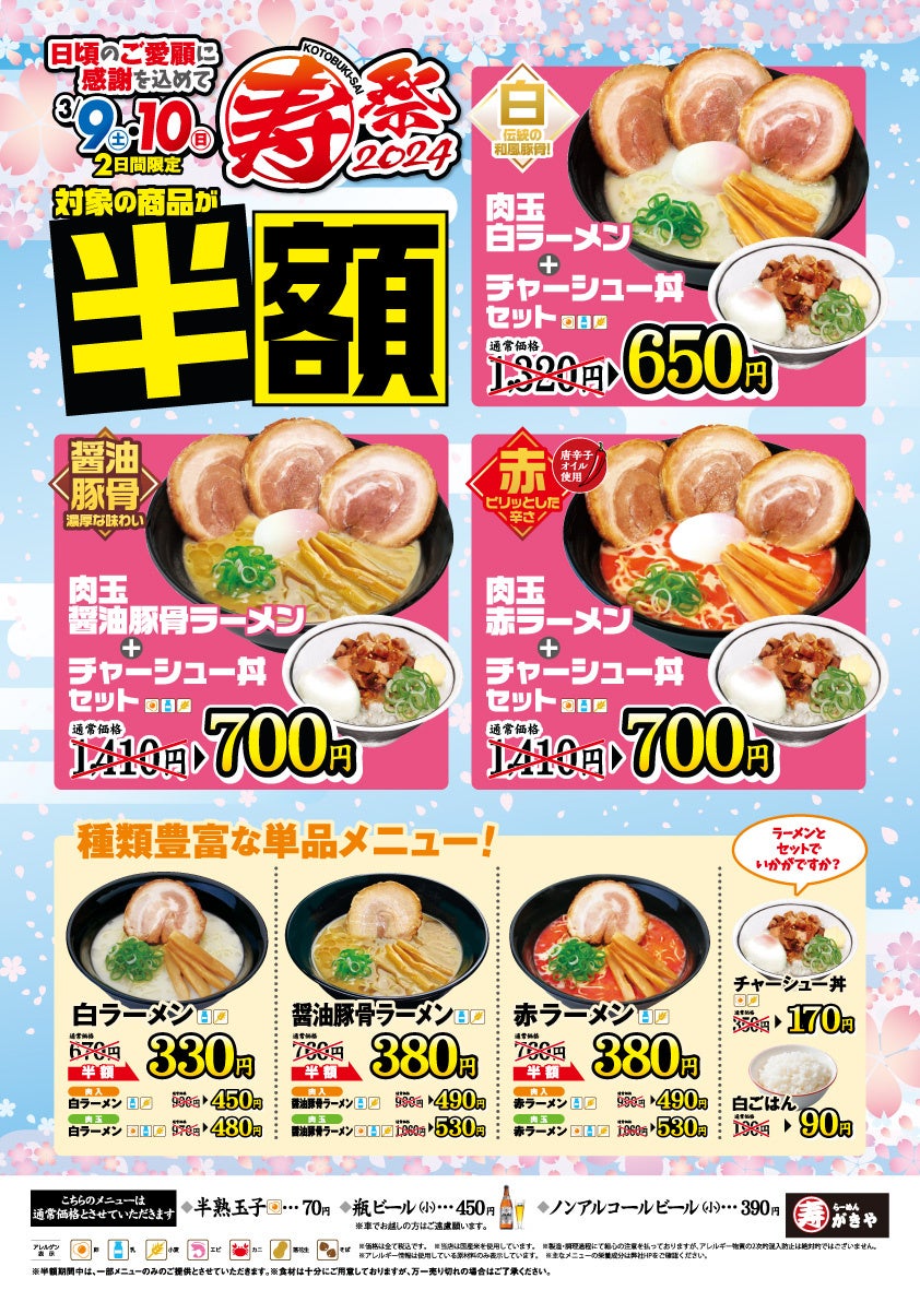 なお、別ブランドの「寿がきや」23店舗におきましても4月上旬の価格改定を予定しております。