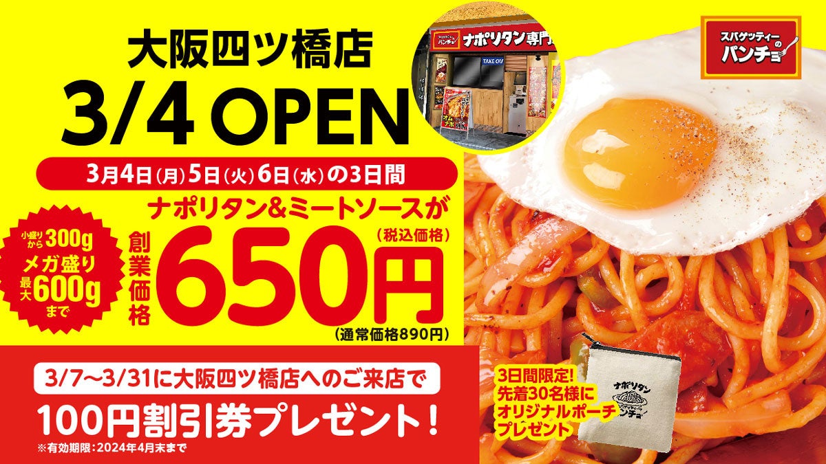 【大阪2店目】大阪のみなさんに、改めてナポリタンはうまいと言わせたい! 3/4(月)『スパゲッティーのパンチョ 大阪四ツ橋店』が新規開店。オープニングキャンペーンを開店3日間&3月中に開催