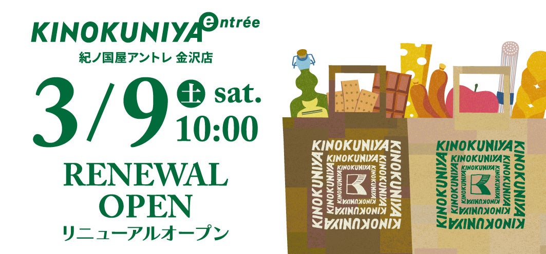 株式会社紀ノ國屋(本社:東京都新宿区)は、3月9日(土)石川県金沢市、近江町市場内の「紀ノ国屋 アントレ 金沢店」をリニューアルオープンいたします。