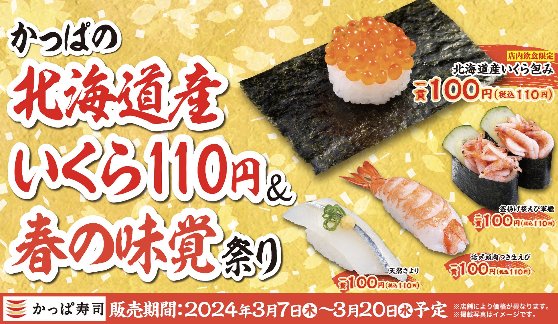 『かっぱの北海道産いくら110円&春の味覚祭り』3月7日(木)より開催!