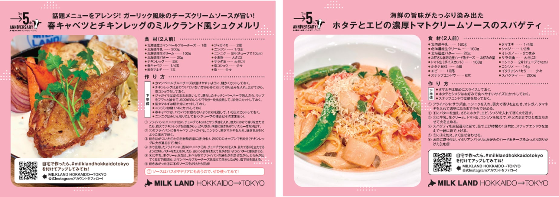 ご家庭でも北海道産牛乳・乳製品をふんだんに使って楽しんでいただけるよう、どちらのメニューもレシピカードをプレゼントいたします。