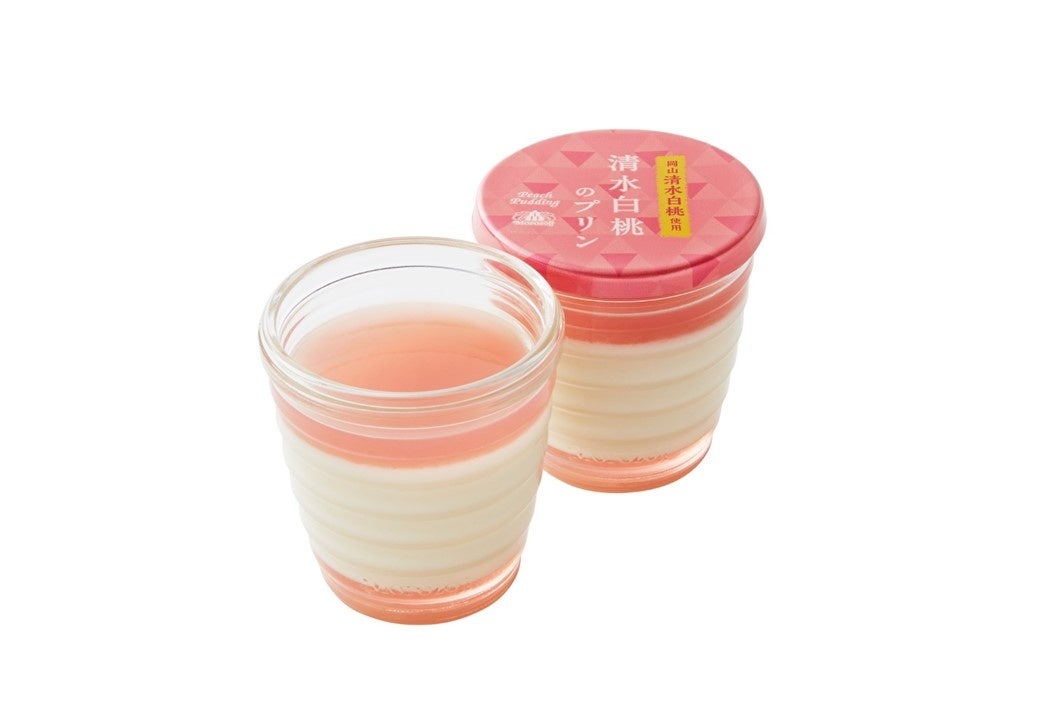 「桃の女王」とも呼ばれる、白く透き通るような美しい姿をもつ清水白桃。その特長は、甘い果汁をたっぷりとくわえた柔らかな果肉。まるで清水白桃そのものを頬ばっているような上品な甘さと香りを閉じこめたとろける食感のプリンをお楽しみください。