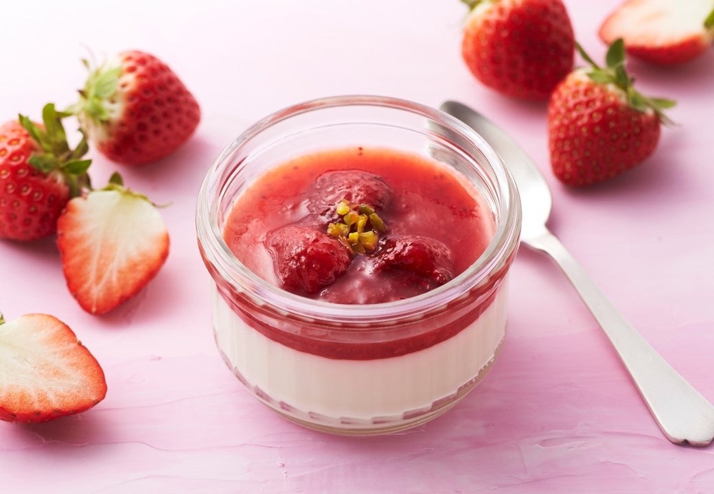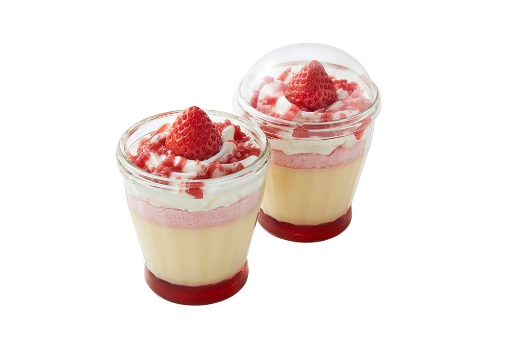 ミルク感のあるやさしい甘さのいちごプリンに、より“いちご感”を感じていただけるつぶつぶとした果肉食感をした色鮮やかないちごゼリーを重ねました。いちごの甘酸っぱさや果実感を楽しめる2層仕立ての濃厚ないちごプリンに、専用の練乳ソースををかけてお楽しみください。