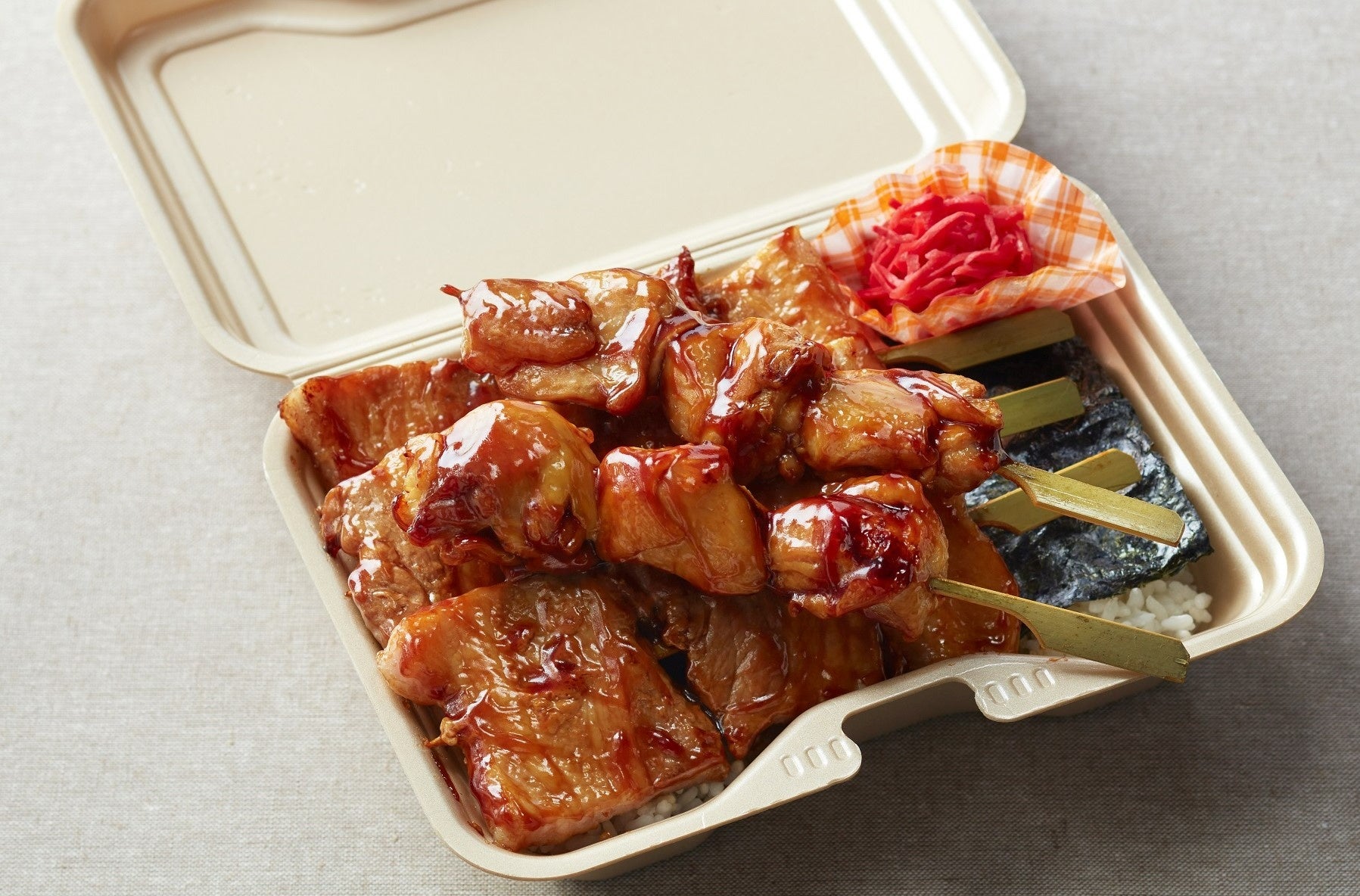 函館市「とん兵衛」 知床鳥・道産豚の メガ盛やき鳥のり弁当 (知床鳥2本・ 道産豚3本、1人前) 2,160円