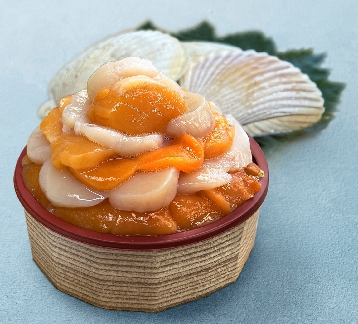 白玉・赤玉の紅白ほたてを贅沢に載せた”宝石のような”逸品。