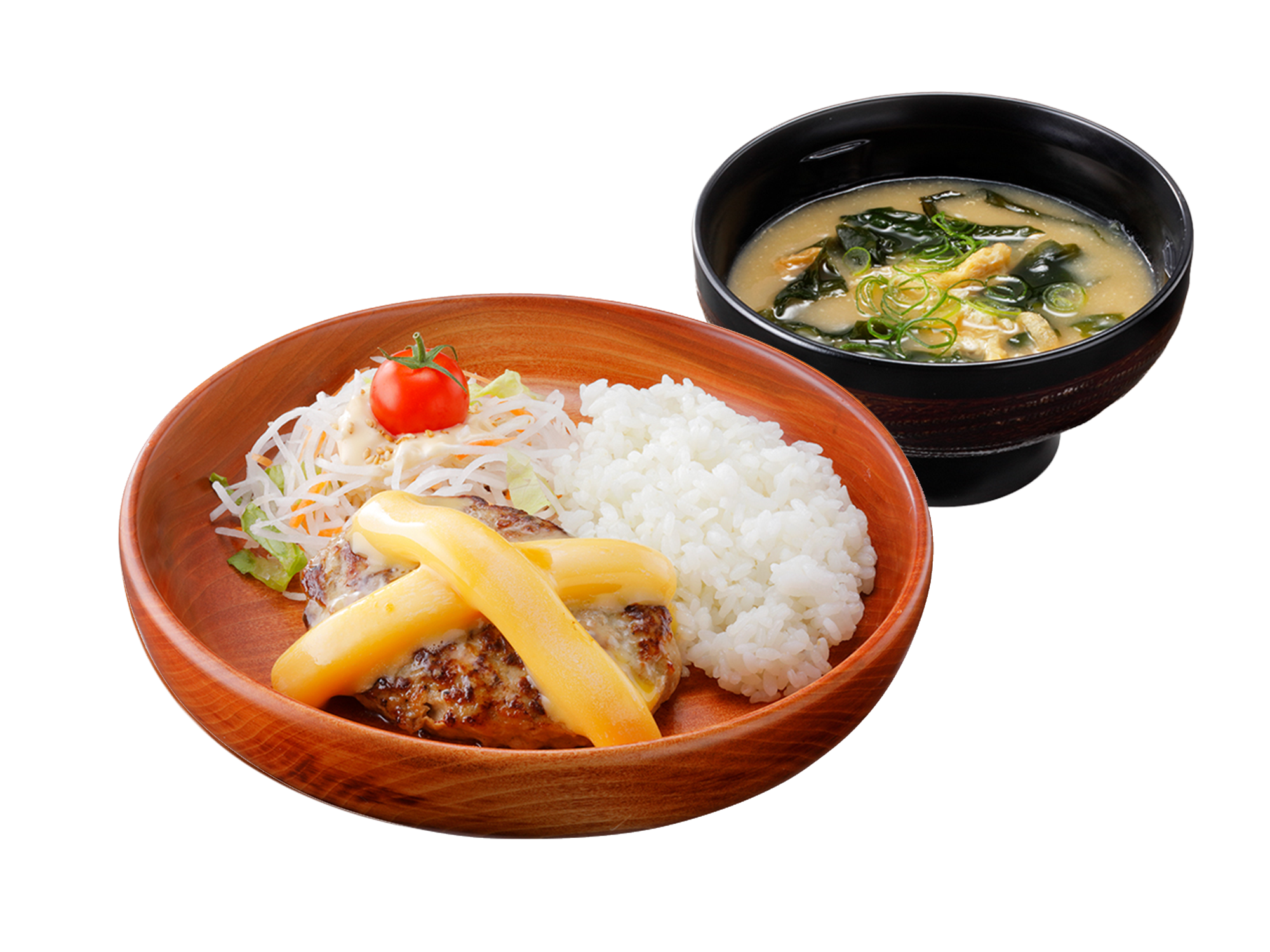 ミニマムサイズのハンバーグ(100g)にとろーり溶けるチーズをトッピングしました。コクのある濃厚なチーズは、独自開発した特製ブレンドです。