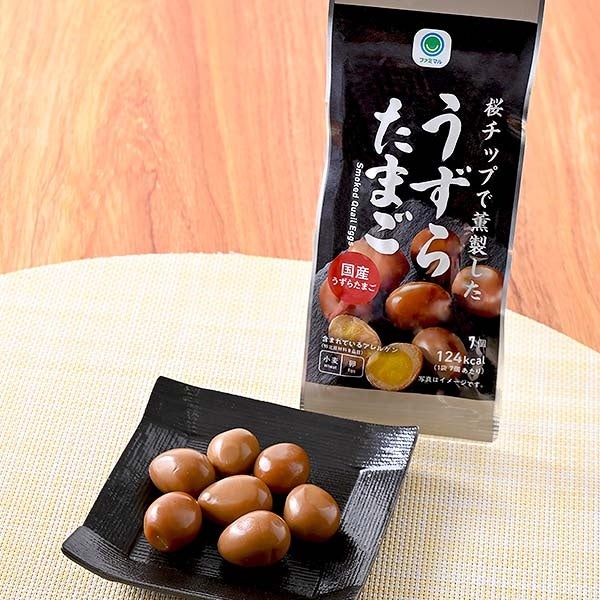 【内容】コク深い味わいの国産うずら玉子を甘辛く味付け、桜チップで薫製にしました。
