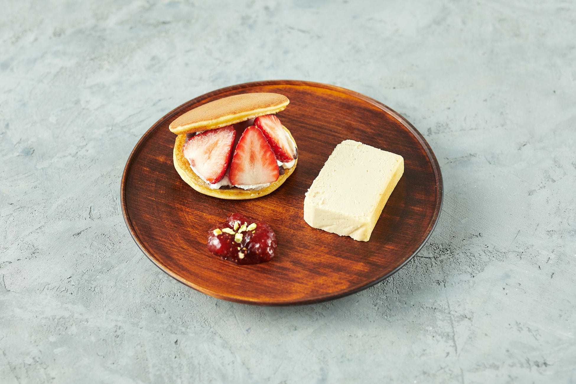 まずはどら焼きとチーズケーキをそのままで、次にジャムをひとさじ添えて。果実の酸味やスパイスの刺激が重なることで、奥行きや複雑さのある新感覚の味わいを堪能いただけます。
