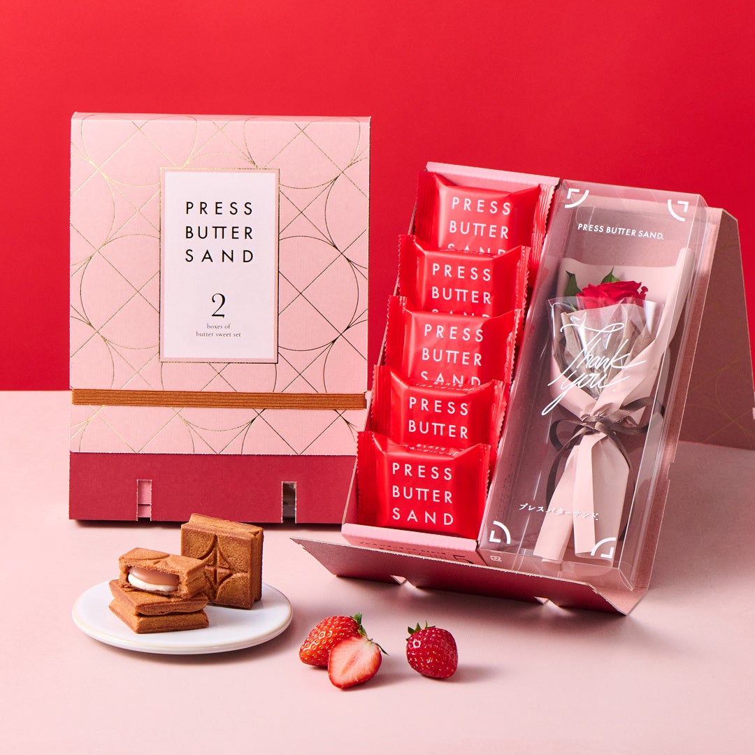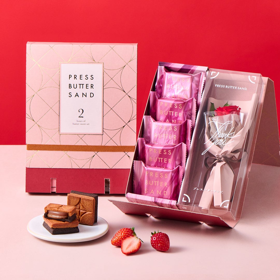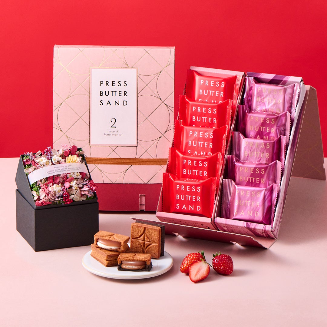 ●バターサンド2種セット贈り物〈苺ショコラ〉10個入&フラワーボックス