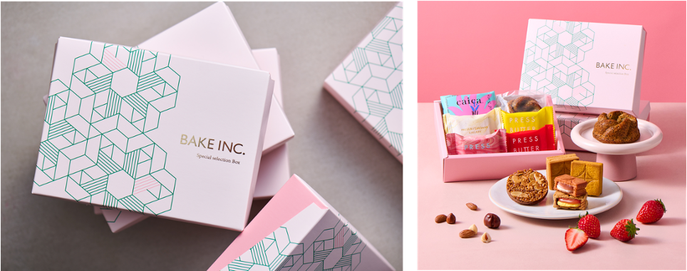 また、プリザーブドフラワーセットの他に、ブランドの垣根を超えた特別な詰め合わせセットもご用意。「PRESS BUTTER SAND」「caica」「しろいし洋菓子店」「BAKE CHEESE TART」「RINGO」の5ブランドから選抜した人気商品を詰め合わせています。普段は特定のブランドしか食べないけれど、BAKEの他ブランドも試してみたいという方におすすめのセットとなっています。