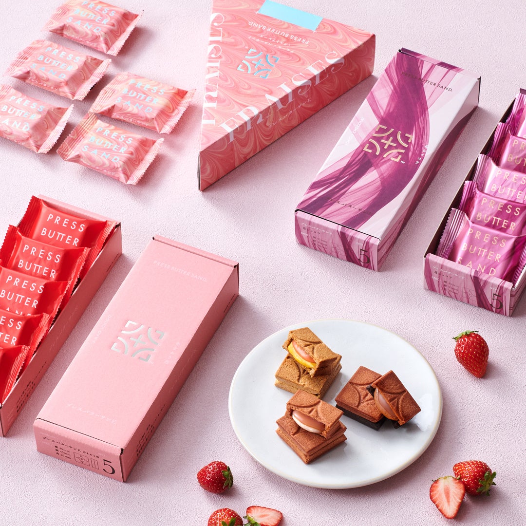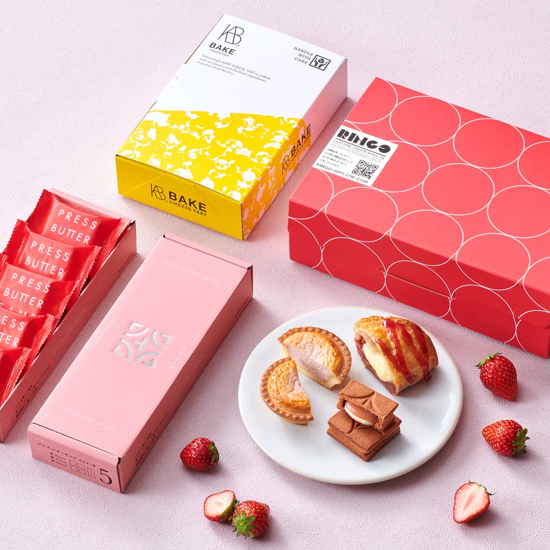「PRESS BUTTER SAND」「caica」「しろいし洋菓子店」の3ブランドの商品を詰め合わせたセレクションボックスや、「PRESS BUTTER SAND」の苺フレーバーをセットにした食べ比べセット、「BAKE CHEESE TART」「PRESS BUTTER SAND」「RINGO」3ブランドの苺商品を集めたスイーツセットなど、ブランドの垣根を超えた特別な組み合わせをお楽しみいただけます。