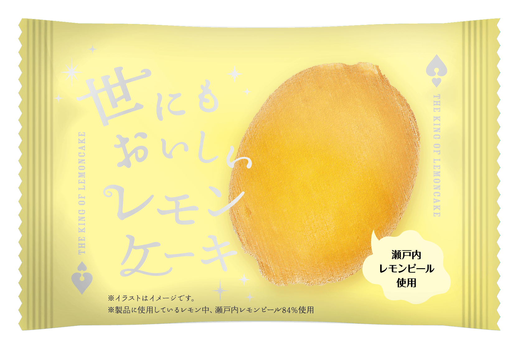 『世にもおいしいレモンケーキ』は、生地に瀬戸内産レモンピール、レモン風味のチョコチップ、はちみつを加えて、レモンの形に焼き上げました。レモンピールとチョコチップの異なる食感と甘酸っぱいレモンの味わいが楽しいスイーツです。
