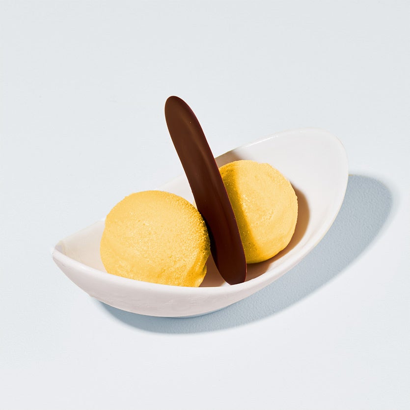 濃厚なマンゴーとユズを合わせたソルベ。マンゴーの甘みをユズの酸味で引き締めた爽やかな味わいに仕上げています。