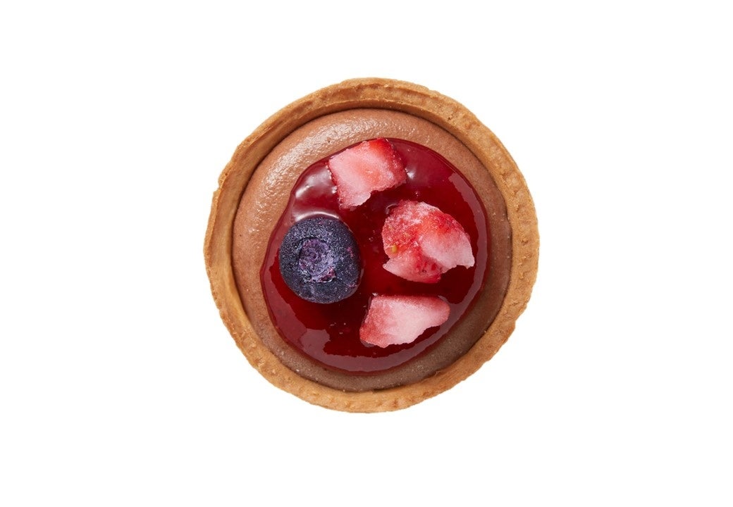 北海道産生クリームにハイカカオチョコレートを使用したアイスクリームベースにチョコレートソースとベリーソースでアクセント。いちごとブルーベリーをトッピング。