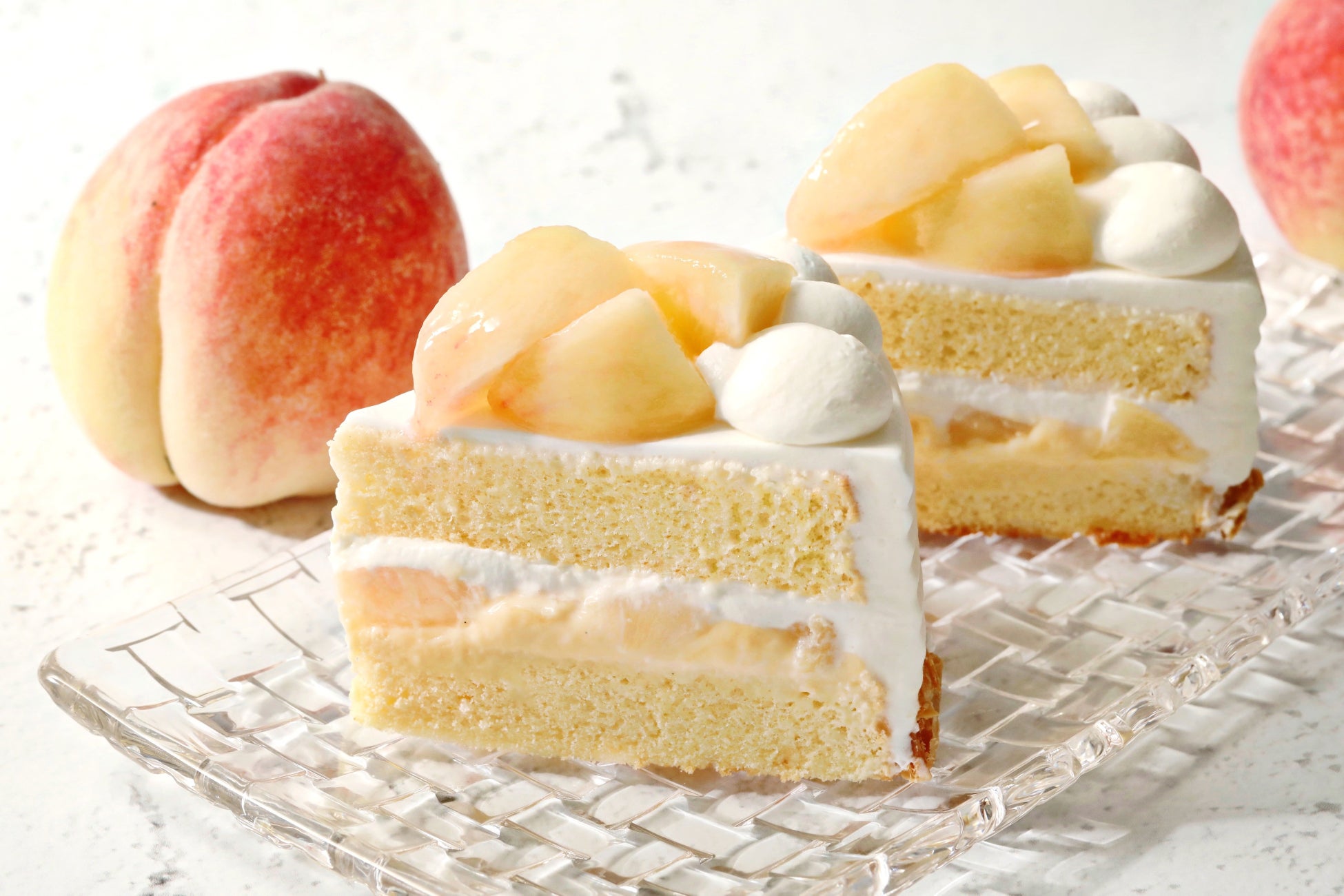国産の桃をまるごと使用した大ヒットスイーツが今年も登場!暑い夏に食べたい、ジューシーな果肉感楽しめる桃スイーツ!過去累計5万個以上※1販売した『まるごと桃のケーキ』をはじめとした4品を7/1より発売