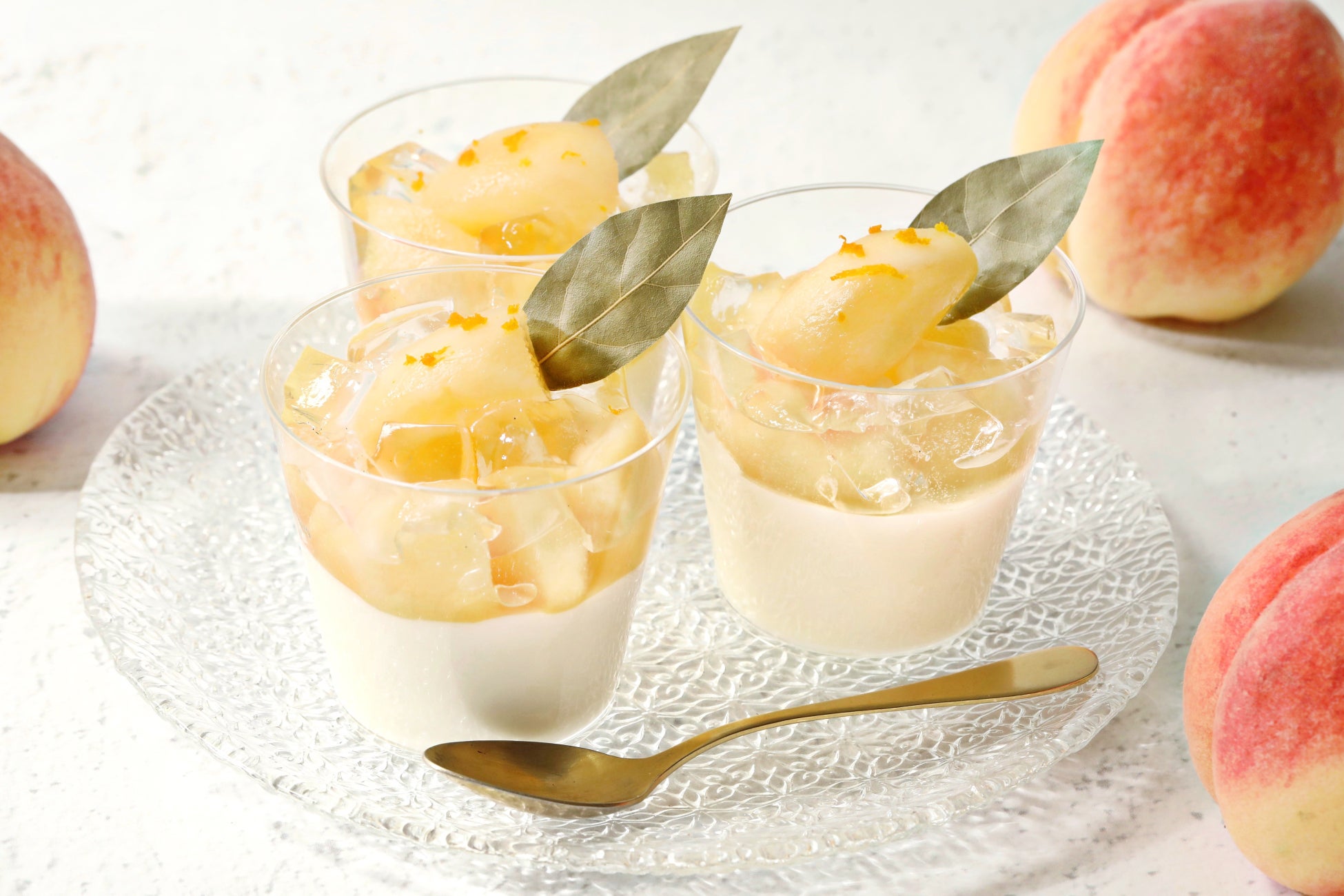 こだわり:国産の桃の甘味とまろやかな杏仁豆腐をお楽しみいただける一品。みずみずしい旬の桃と、なめらかな杏仁豆腐、クローブ香るレモンゼリーを入れて、オレンジ皮をトッピングしました。柑橘の爽やかな風味がアクセント。暑い夏でもさっぱりとお召し上がりいただける味わいです。