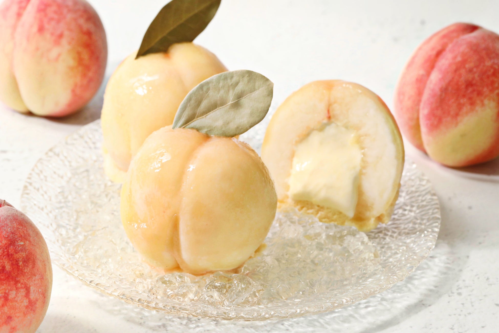 こだわり:過去累計5万個以上※1販売した大ヒット商品が今年も登場。国産の桃をまるごと使用した、夏季限定の桃のケーキです。桃の種をくりぬいた中にディプロマットクリーム※2を詰め込みました。クローブが香る爽やかなレモンゼリーをまとわせて、桃の旨味が引き立つ味わいに。柔らかくてジューシーな桃の果肉となめらかなクリームが合わさった、至福の味わいをご賞味いただけます。