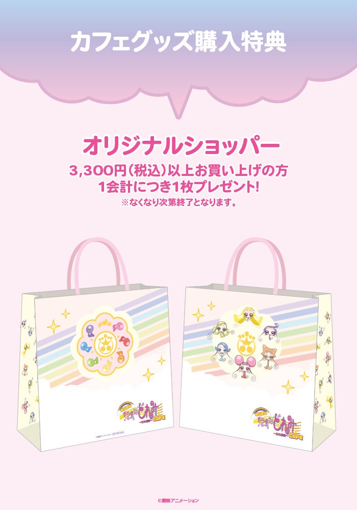 ■カフェグッズ購入特典:物販コーナーで、税込3,300円以上お買い上げいただいた方に、「オリジナルショッパー」を1会計につき1枚プレゼント。 ※無くなり次第終了。