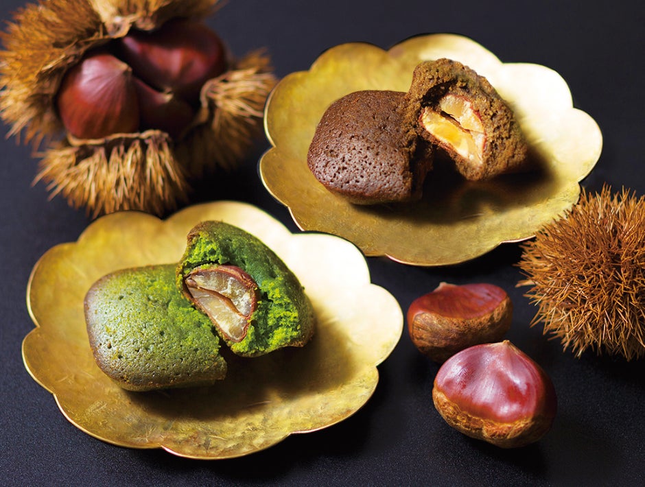 日本茶の深みある風味とバターが香る生地に、大きな国産渋皮栗の甘露煮がまるごとごろん。