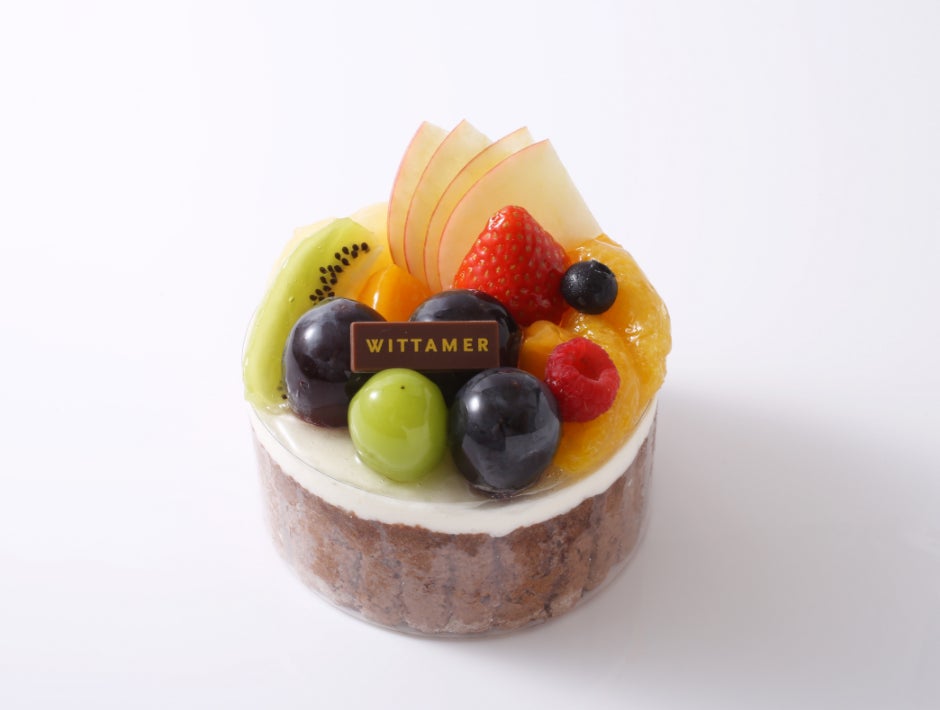 旬のぶどうをのせたレアチーズムース。甘酸っぱいカシスムースがアクセント。