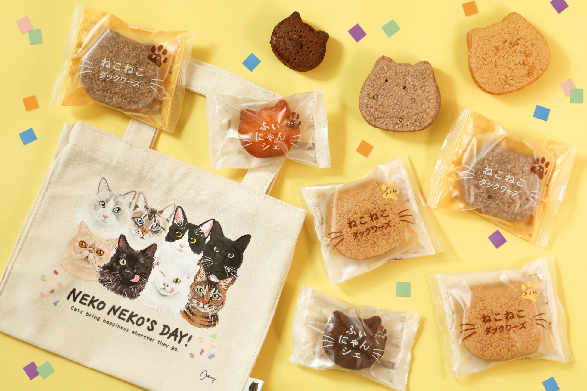 また、看板商品「ねこねこチーズケーキ」の新しい仲間『とらねこチーズケーキ~キャラメルアップル~』も期間限定で発売!さらに“猫の日”に向けて、~ねこねこの日~をテーマにしたオリジナルのランチトートバッグ付き『ねこねこの日バッグ』もご用意いたしました。