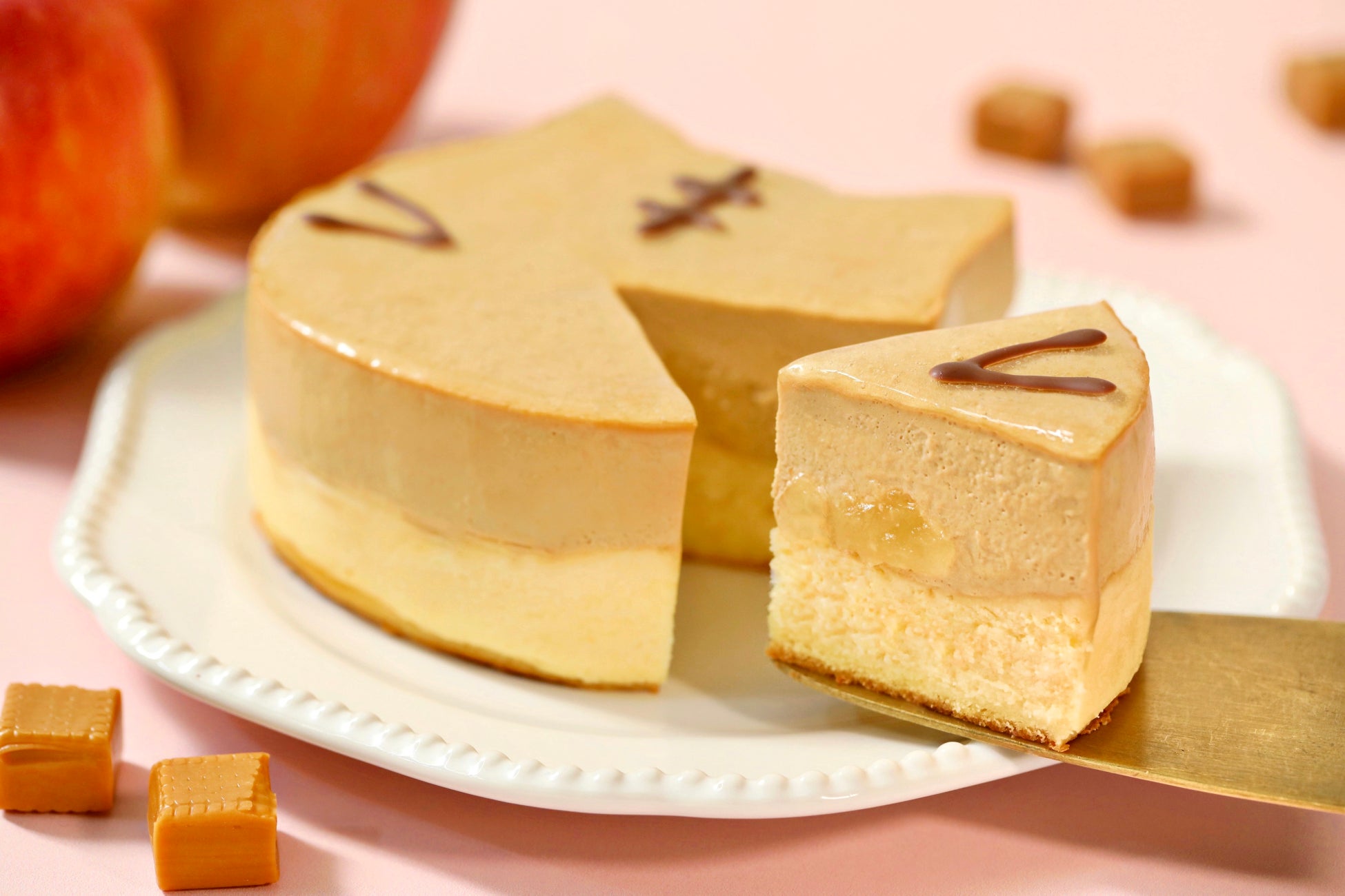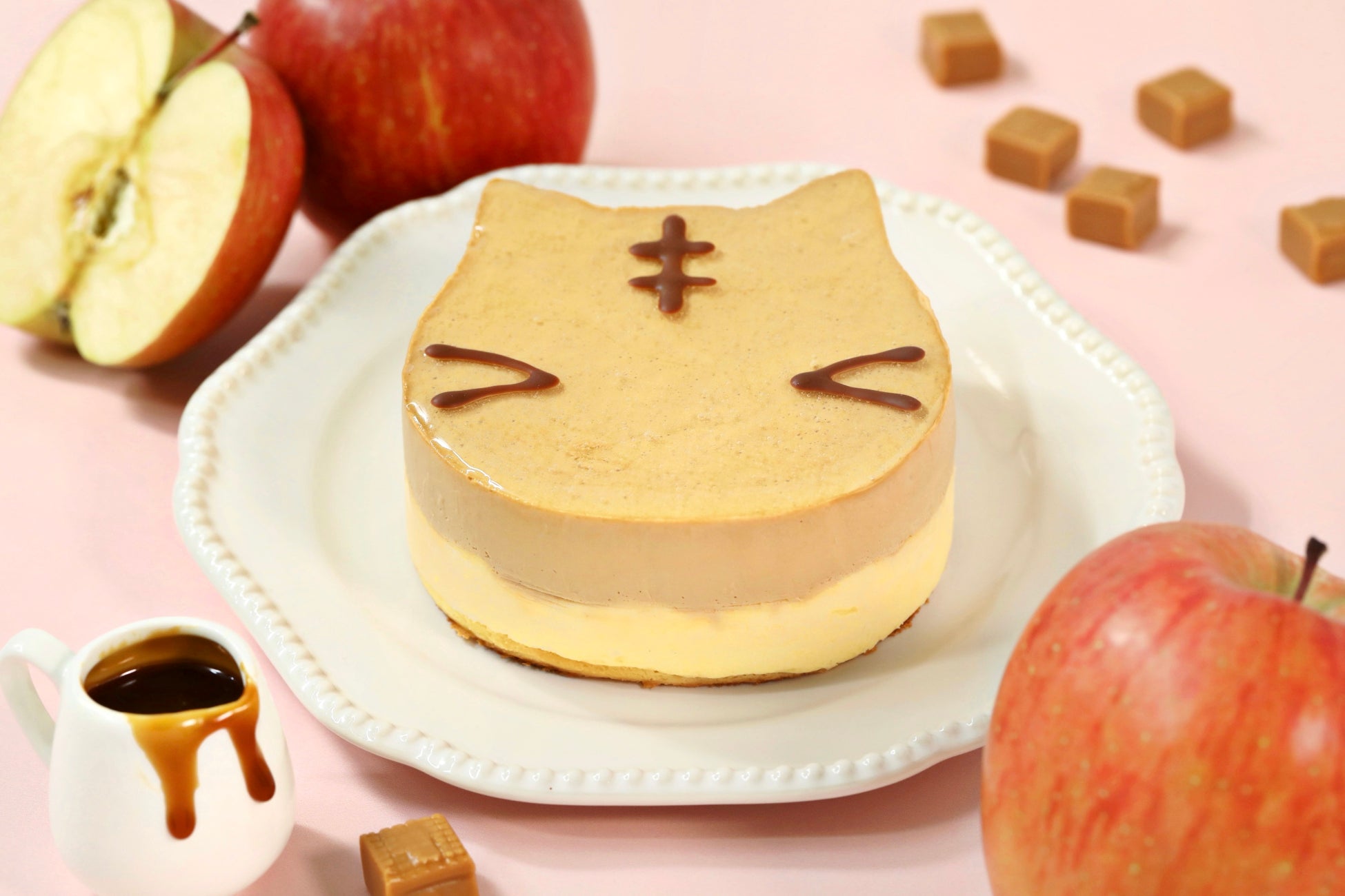 こだわり:「とらねこ」模様のねこちゃんをモチーフにした「ねこねこ」チーズケーキの新しい仲間です。生キャラメルをイメージした口溶けなめらかなキャラメルチーズムースと、ベイクドチーズケーキの2層仕立て。中にはアクセントにりんごジャムを忍ばせて、最後まで飽きの来ない味わいに仕上げました。口に広がるキャラメルの風味と、さっぱりとしたりんごジャムとの相性をご賞味いただけます。「猫の日」のスイーツとしてはもちろん、ねこ好きさんのバースデーケーキやギフトにもぴったりなケーキです。